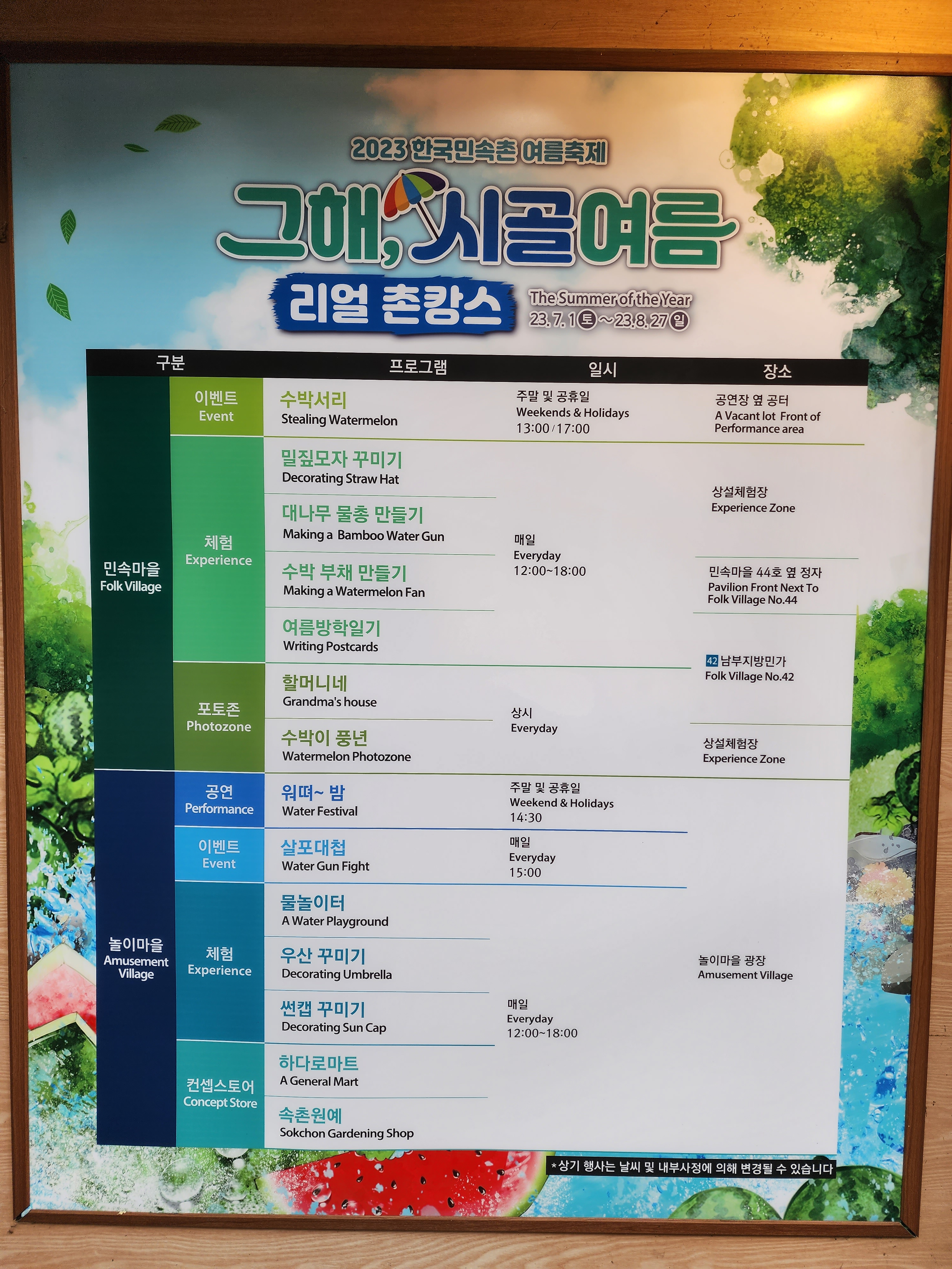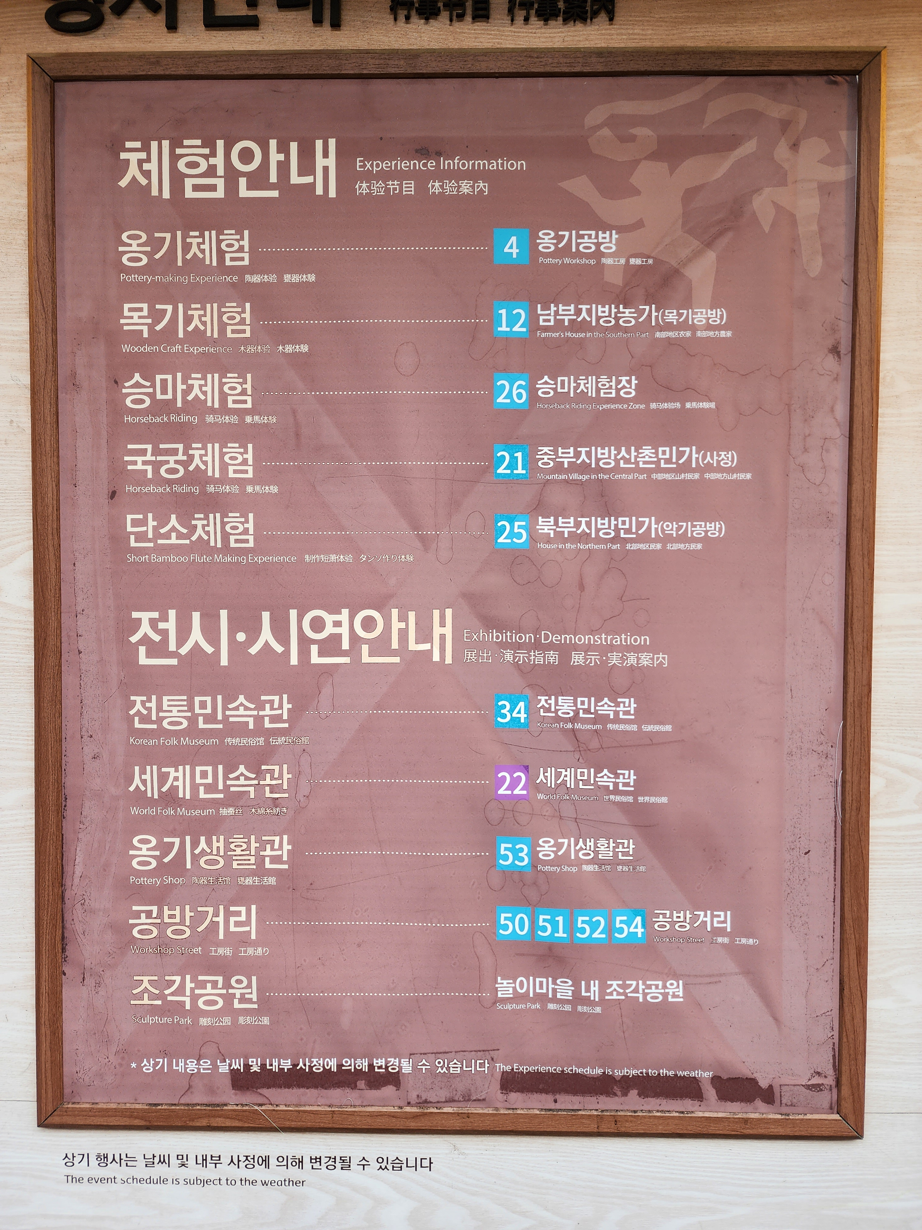 체험이나 공연등을 일정을 확인해 보시고