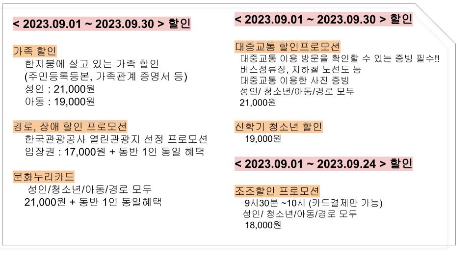 1. 입장권 요금과 할인 정보