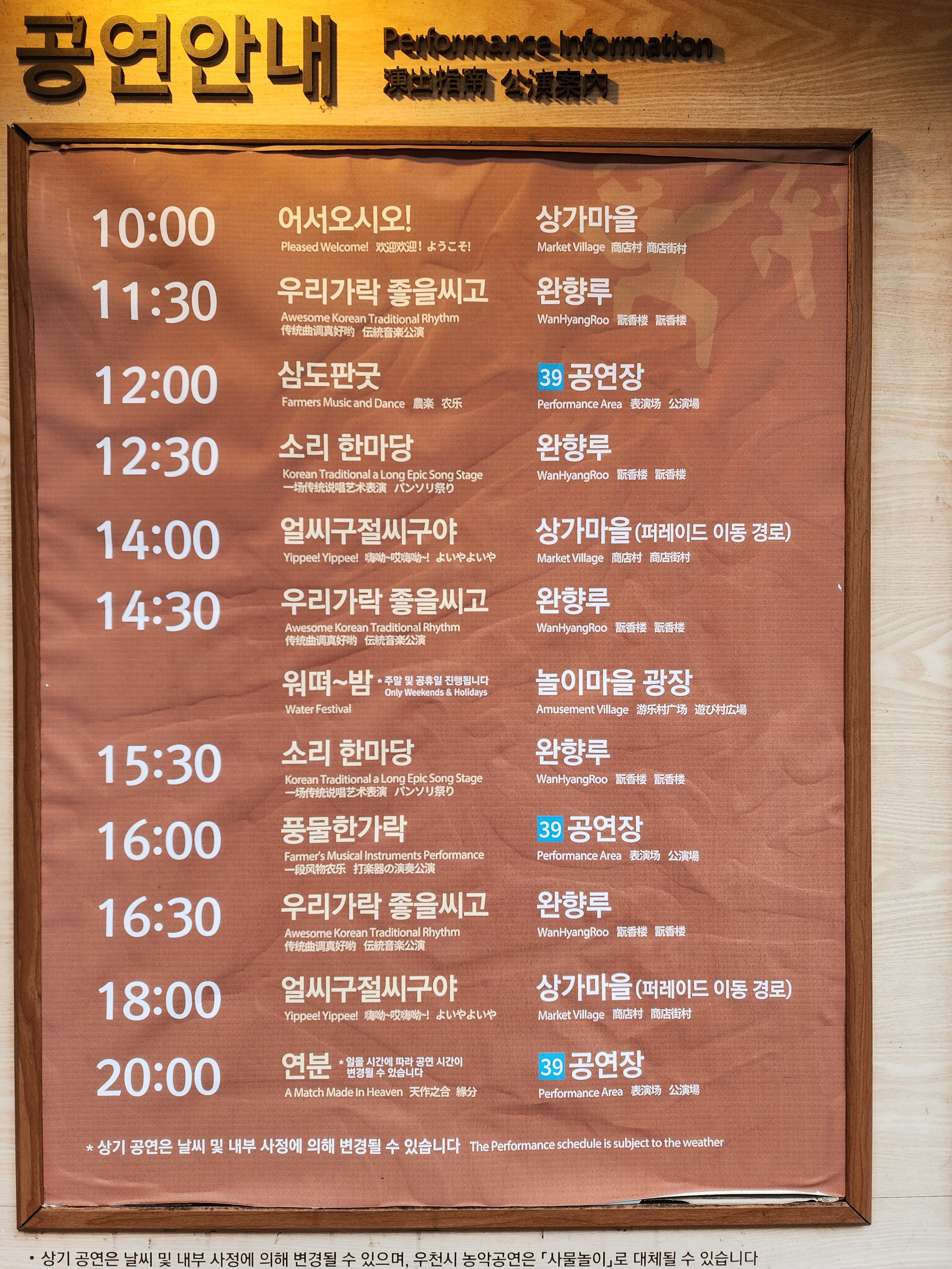 체험이나 공연등을 일정을 확인해 보시고