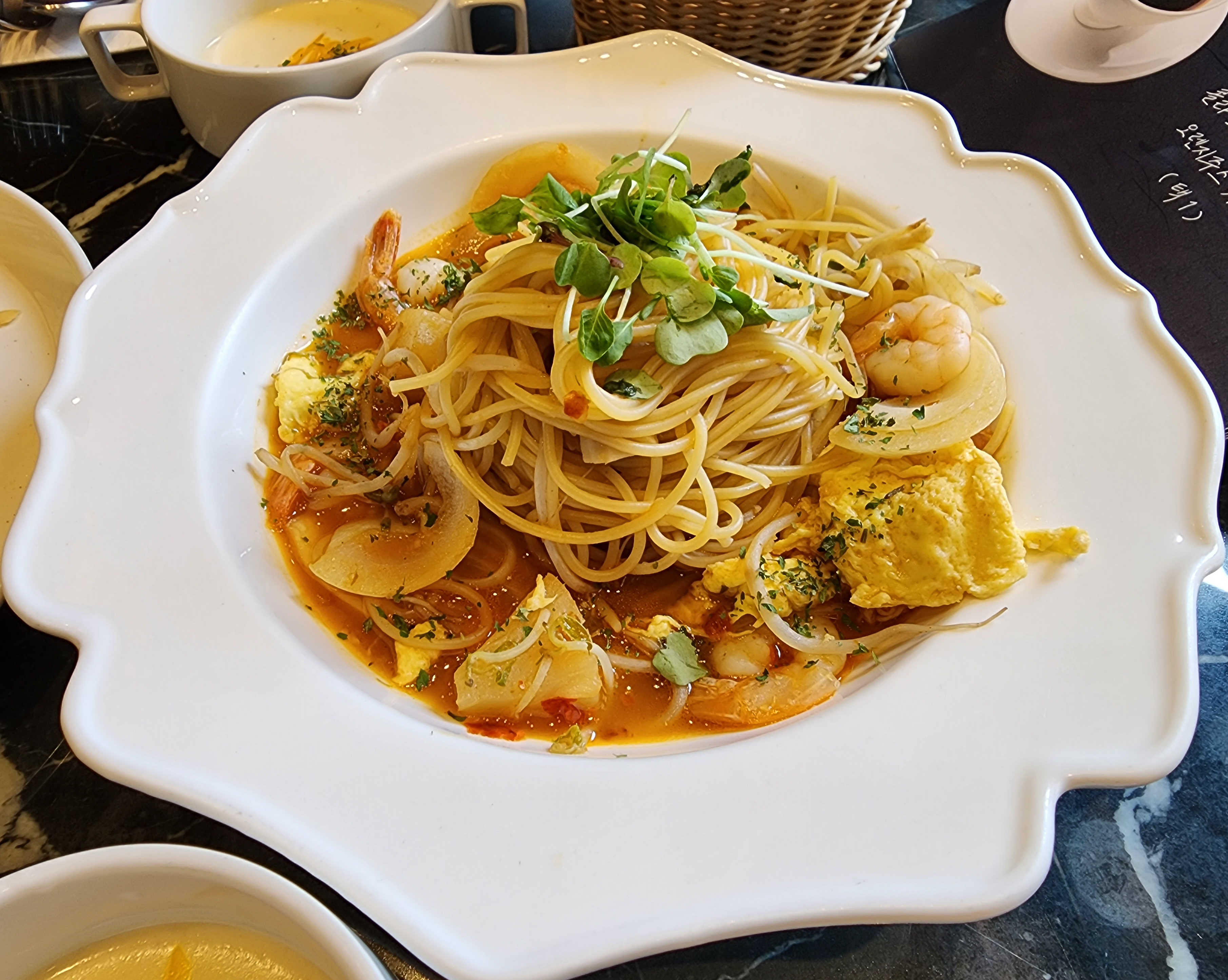 미고랭 파스타를 시켜보았는데,