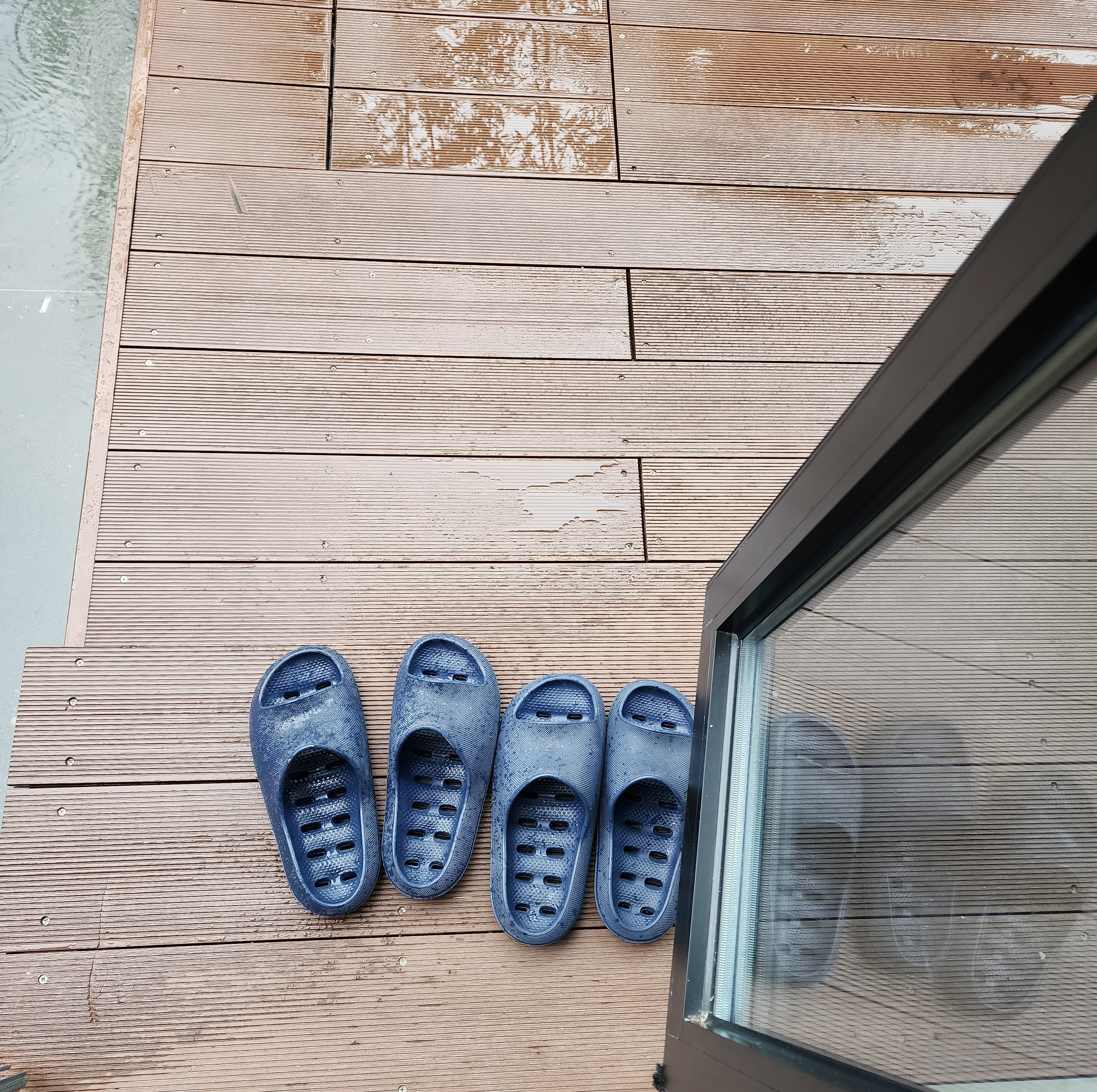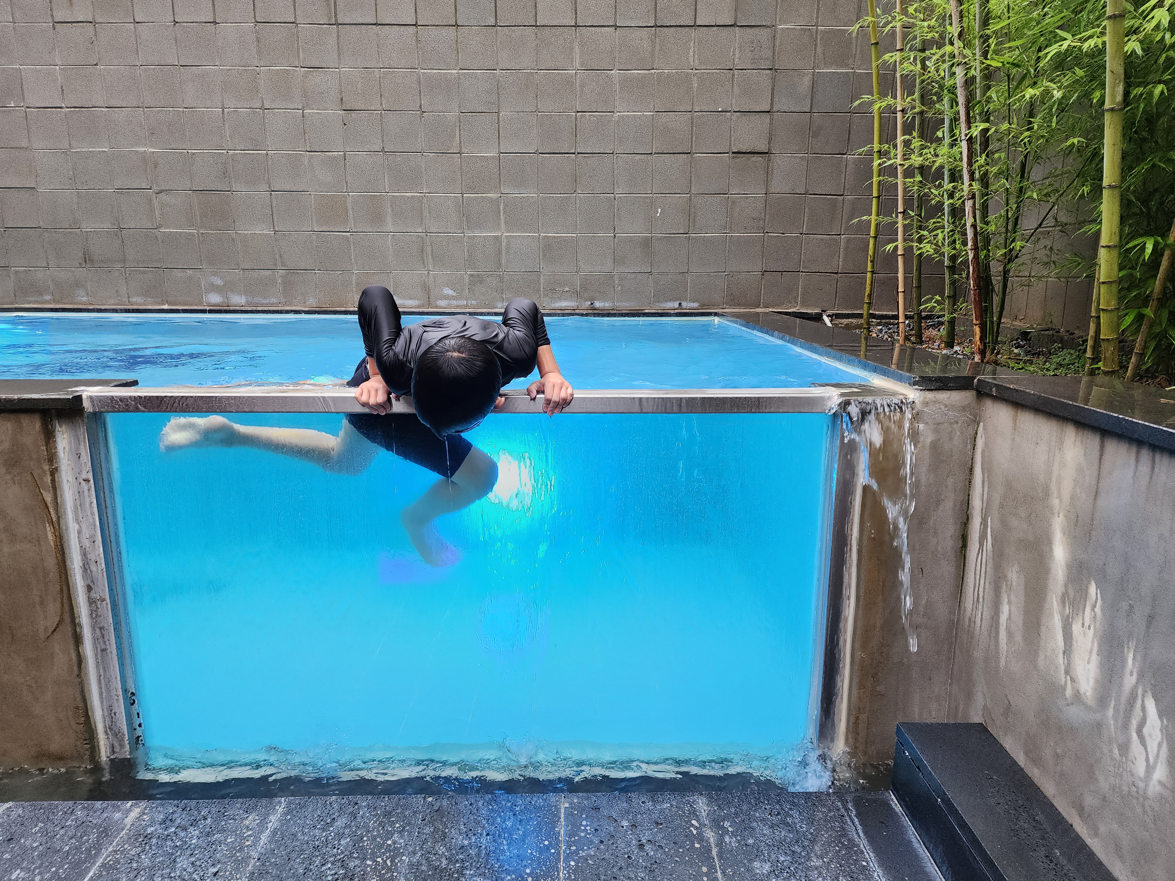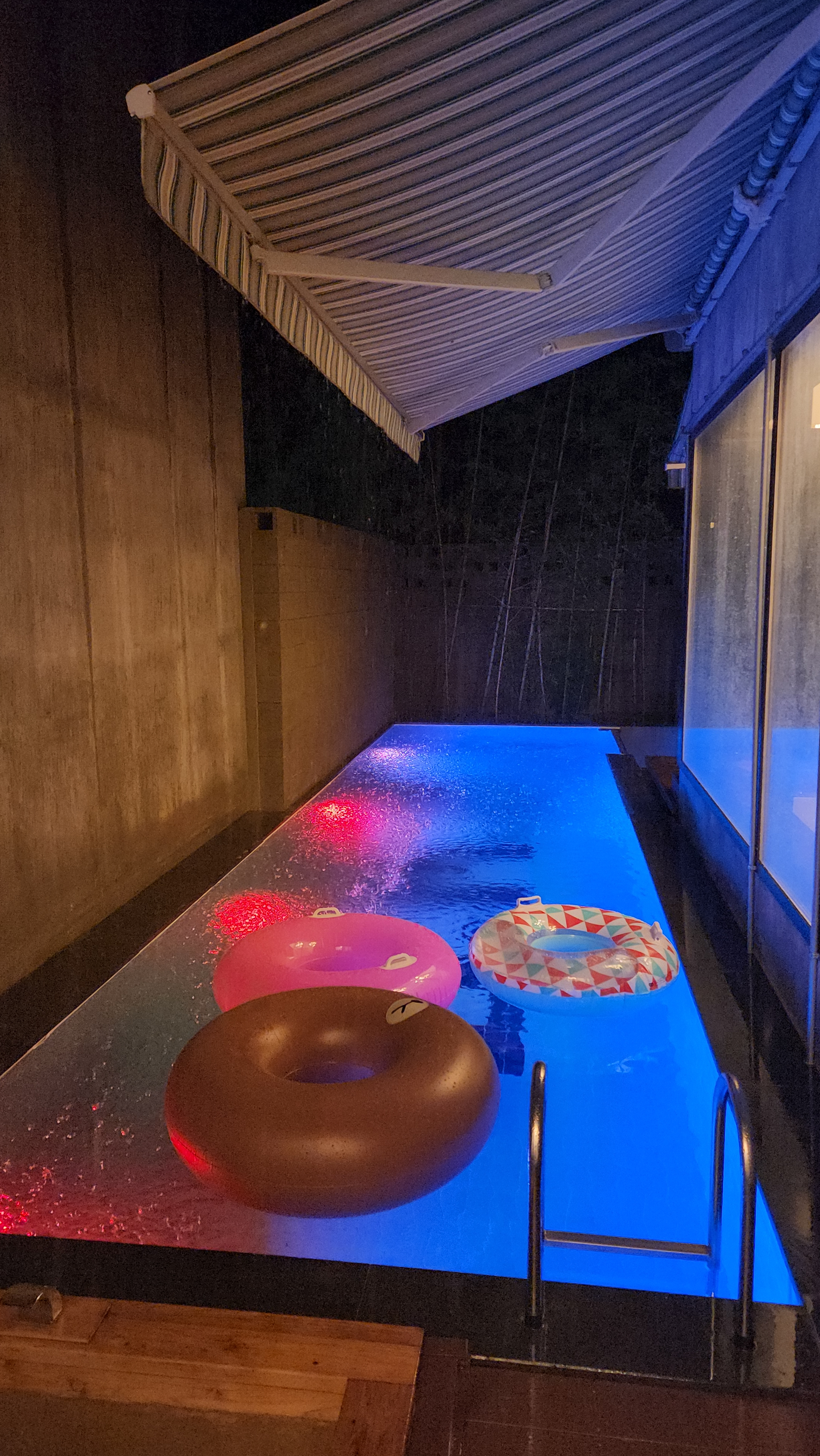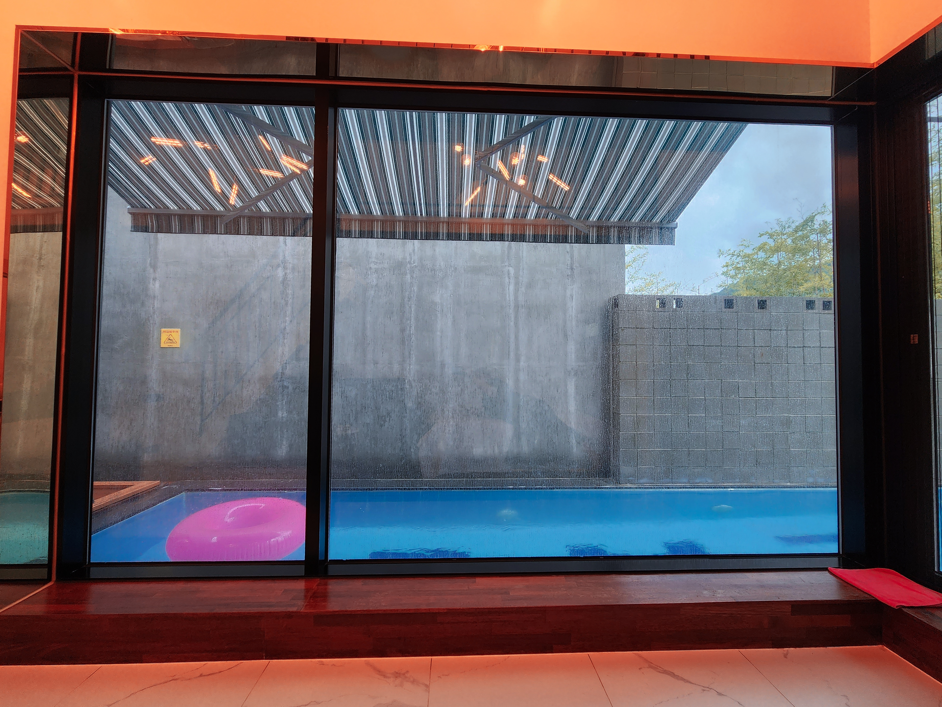 수영장에 떨어지는 빗소리가