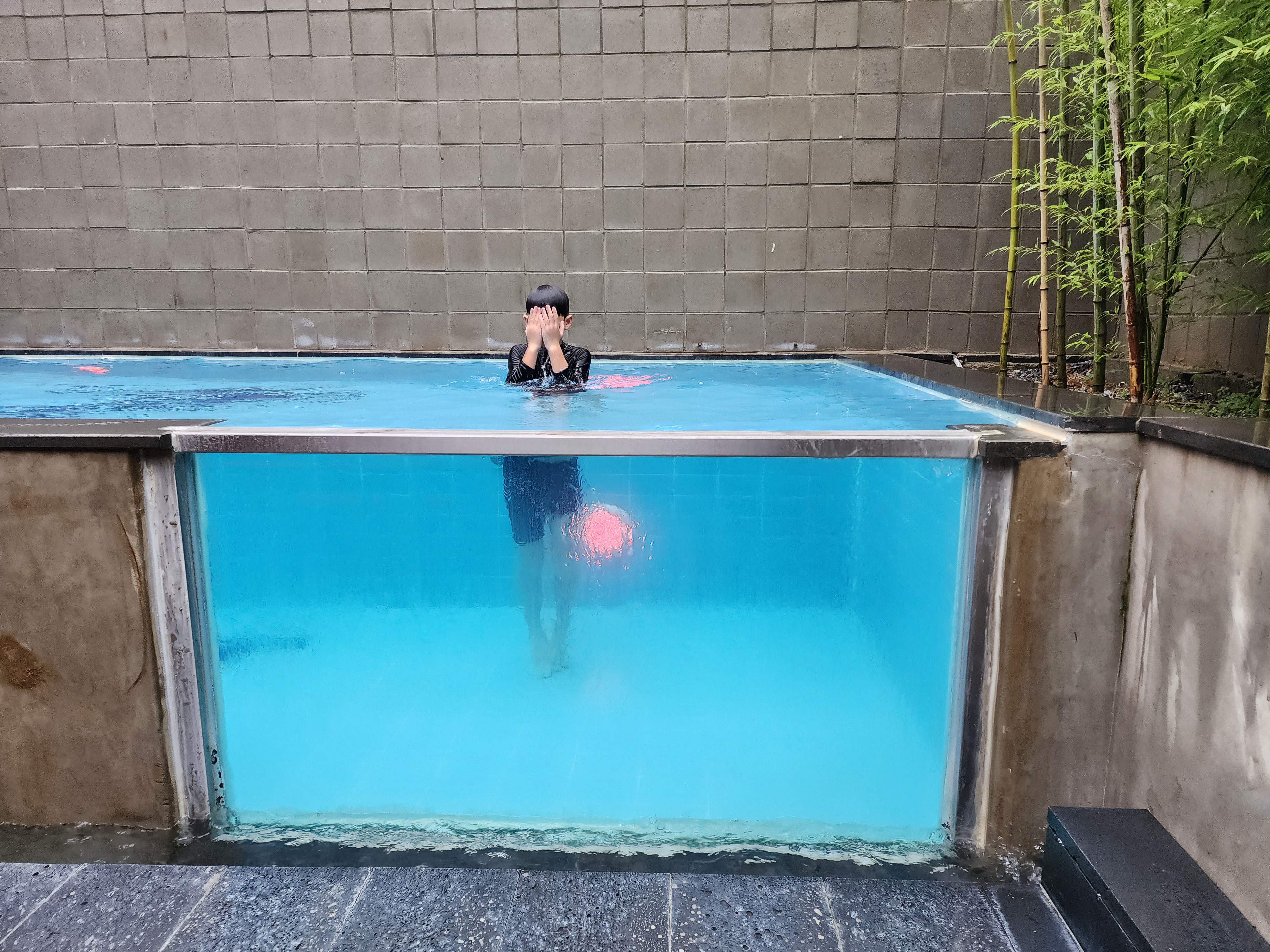 135cm 쯤 되는 초등학생이 수영장에 서면