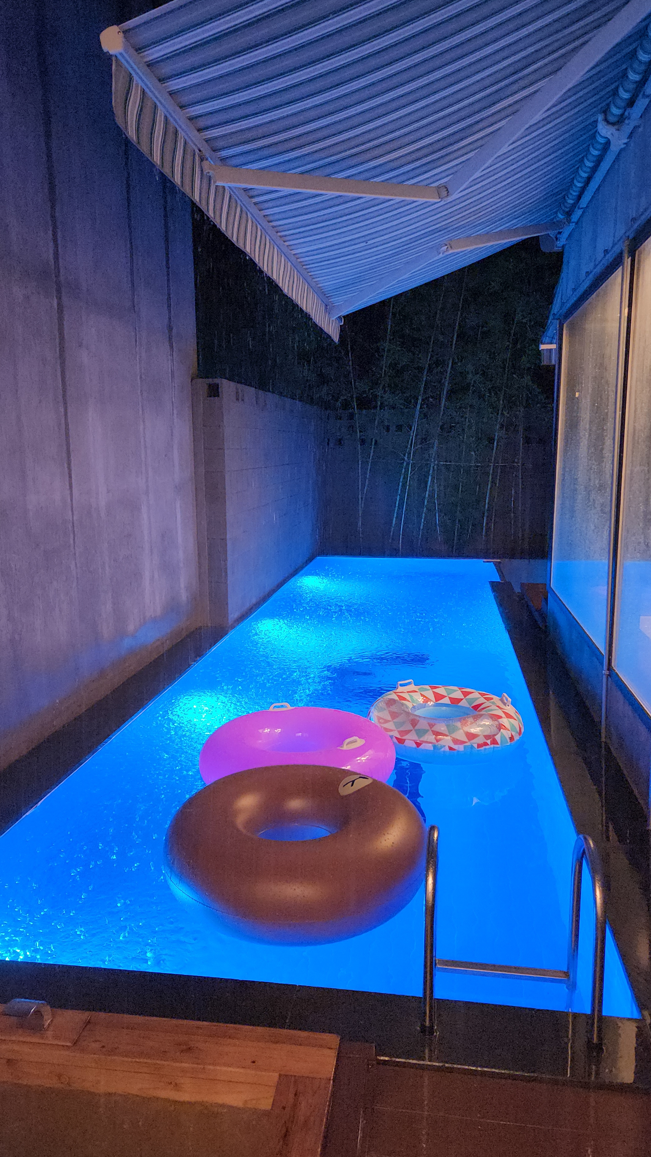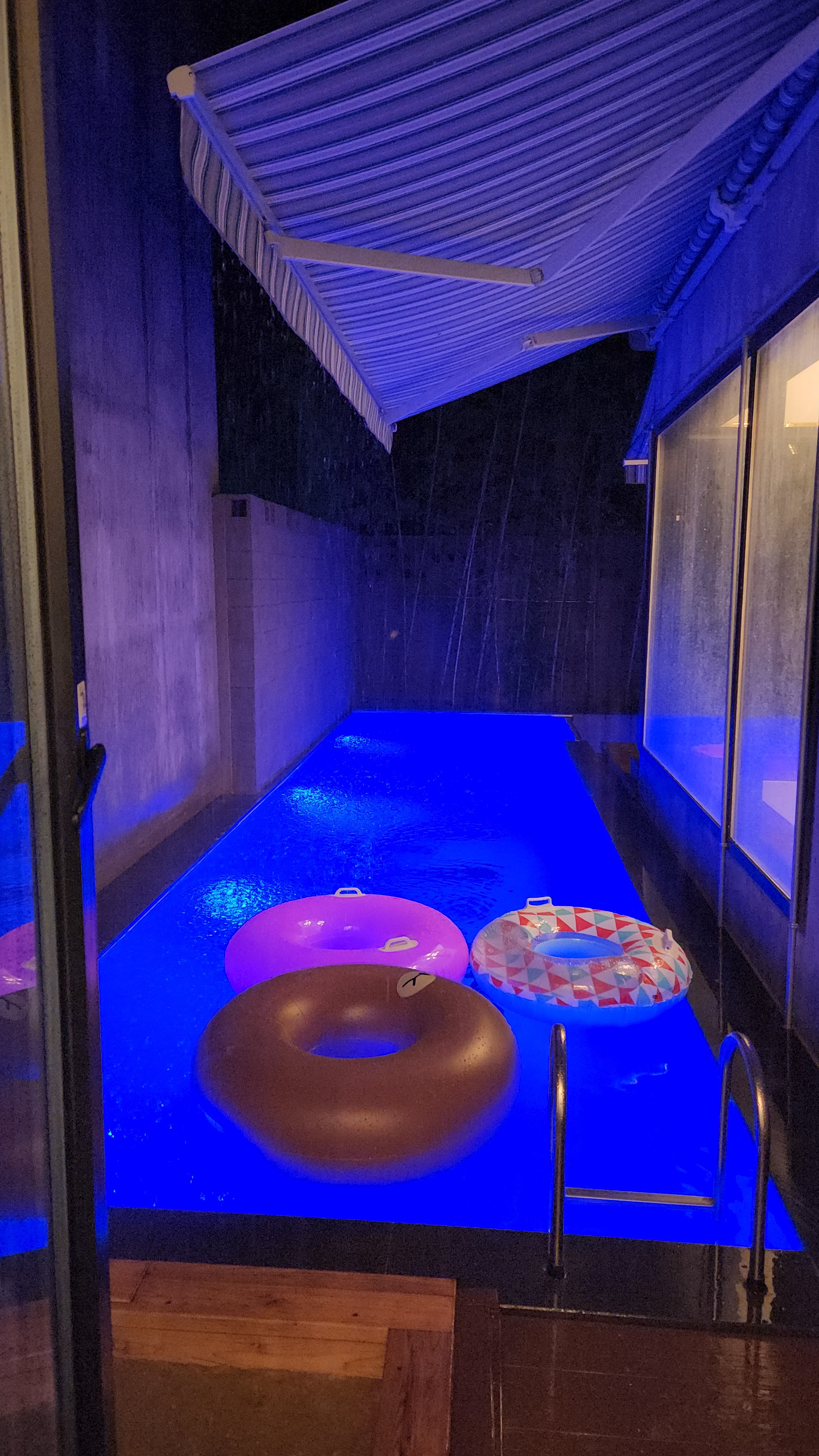 수영장에 떨어지는 빗소리가