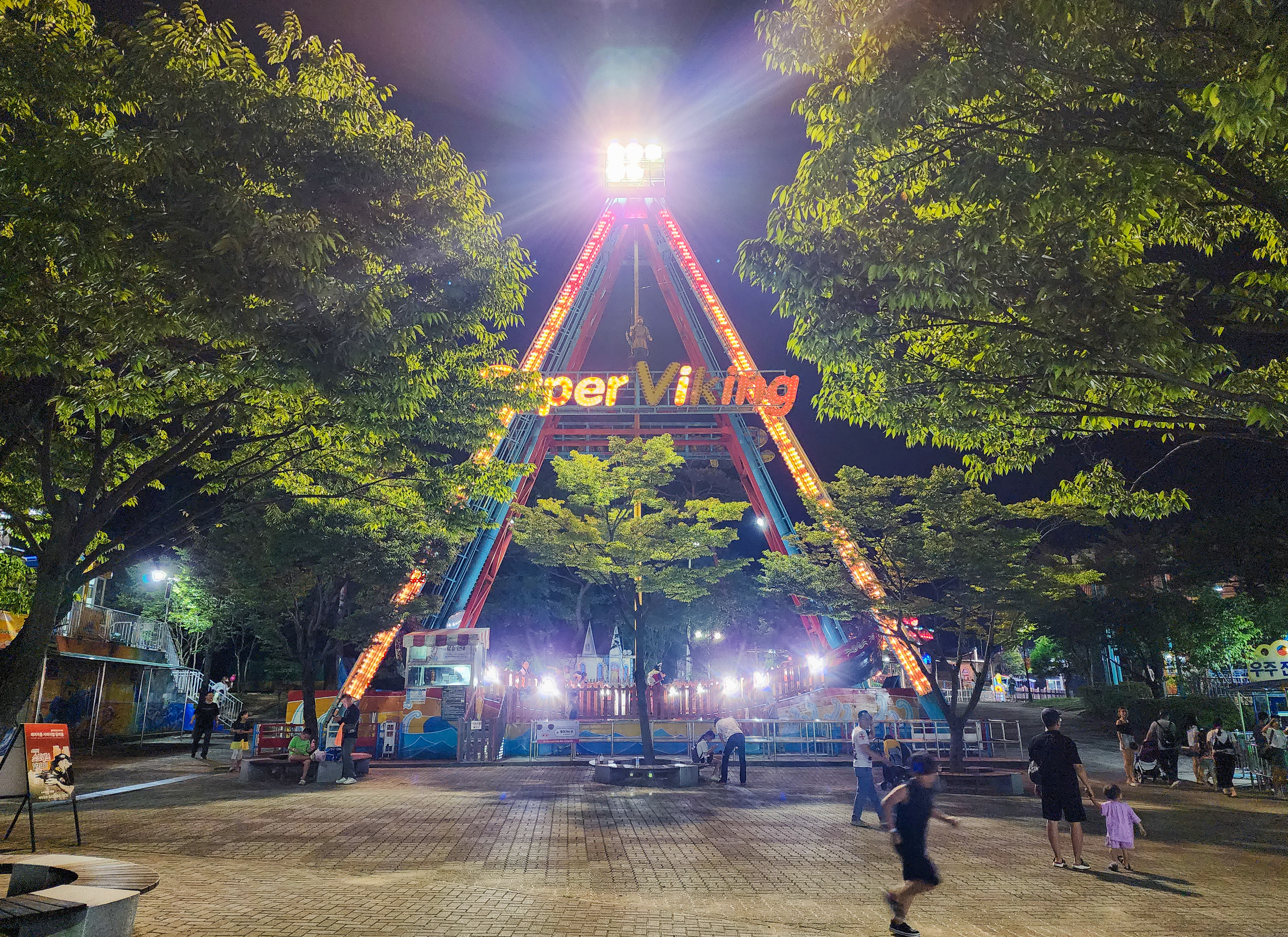 야간개장하는 날은 놀이 공원도 야간 운행을 해요.