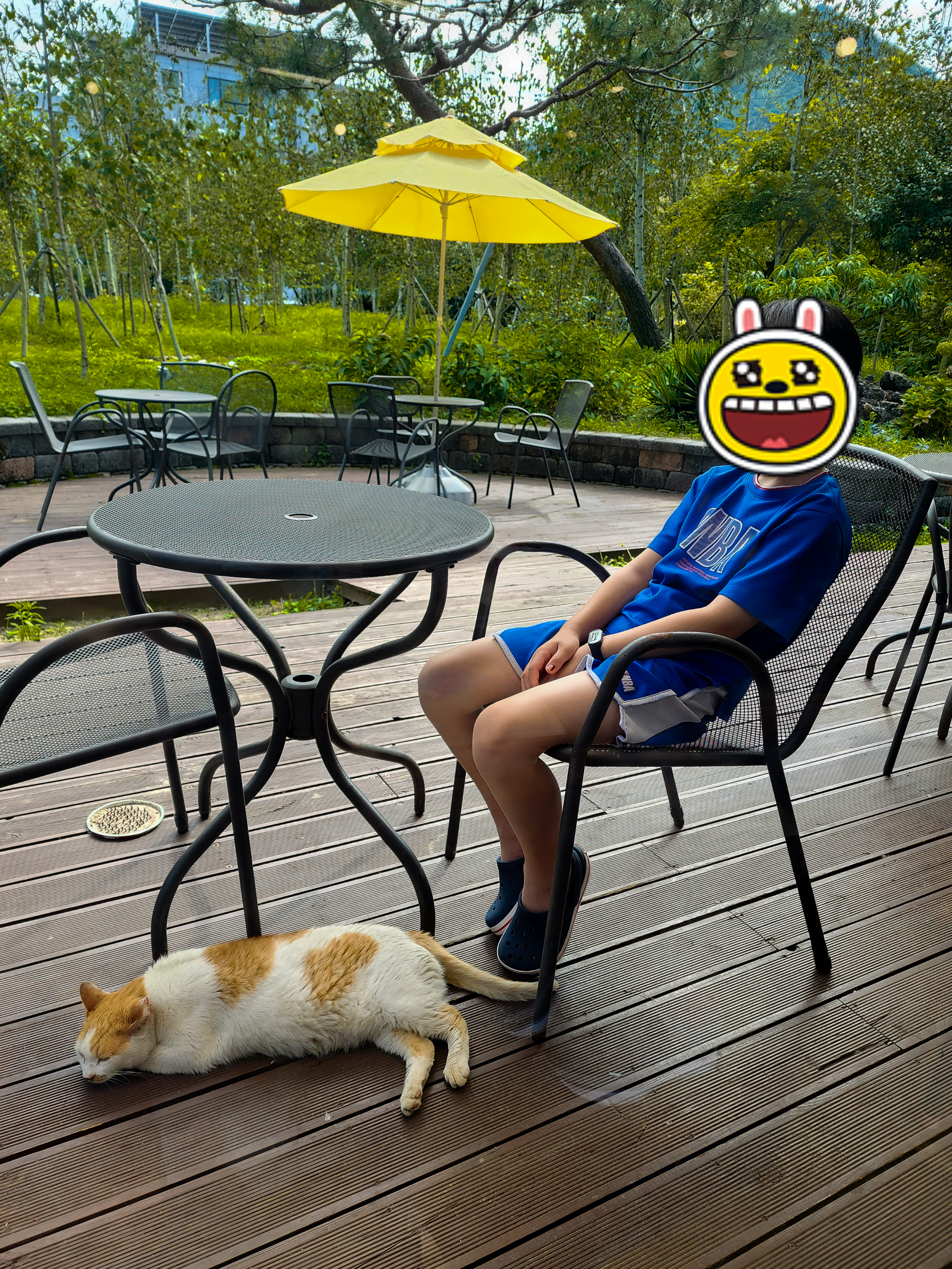 더우면 카페 의자 밑 그늘에 누워 있고,