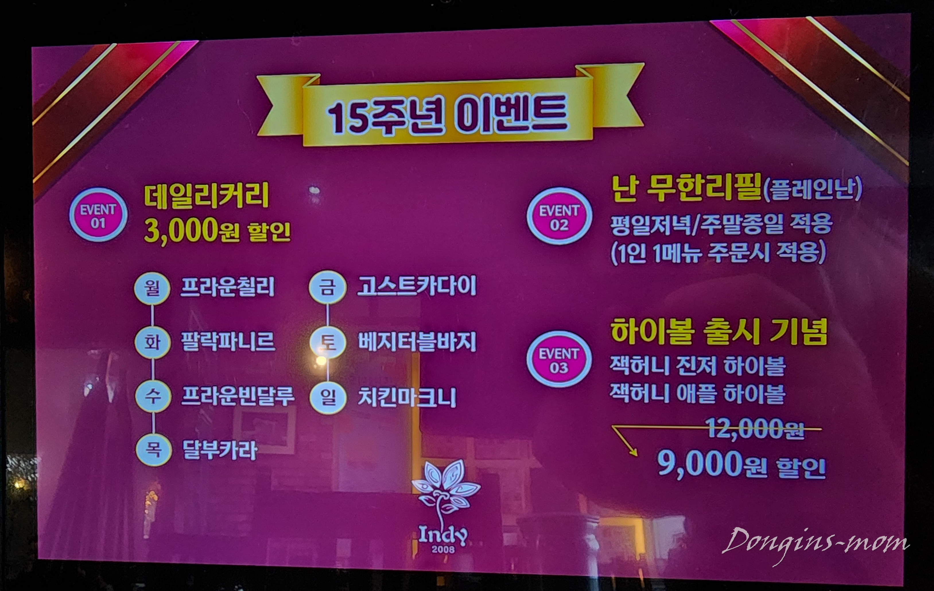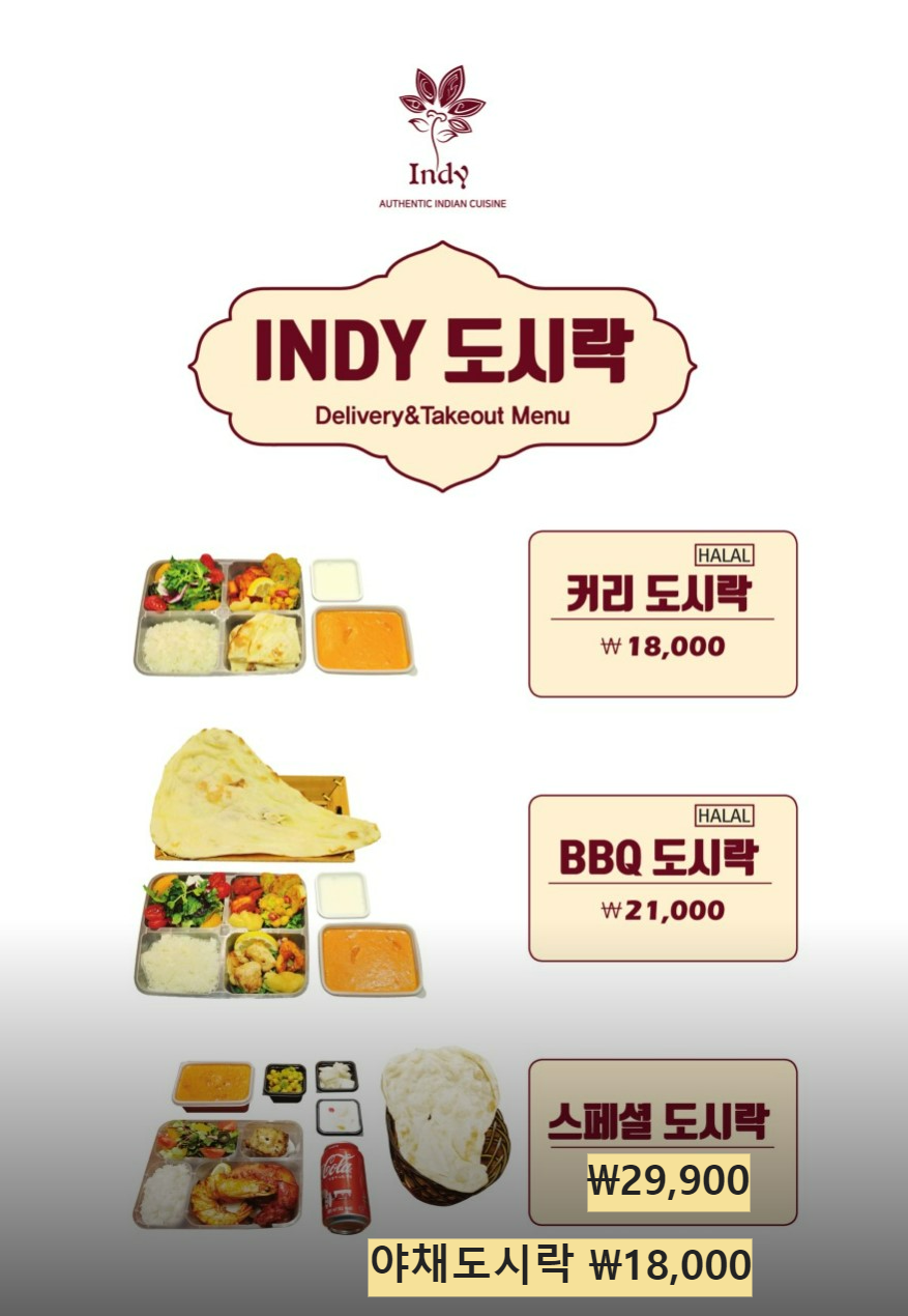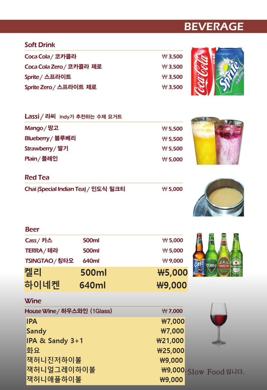 아래의 메뉴판은 인디(INDY)에서 공개한 메뉴 이미지예요.