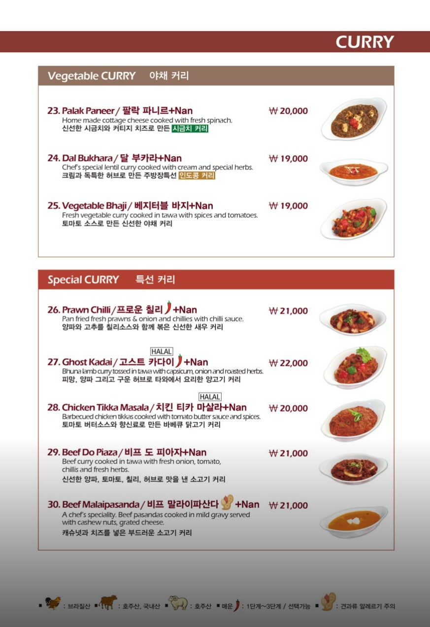 커리 (인도 카레) : 치킨마크니, 비프말라이파산다