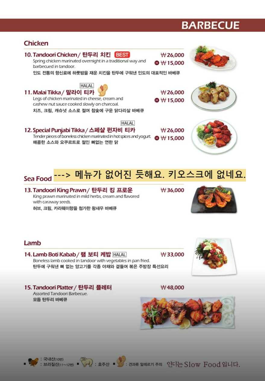 탄두리 킹 프라운 메뉴는 없어진 듯 해요.