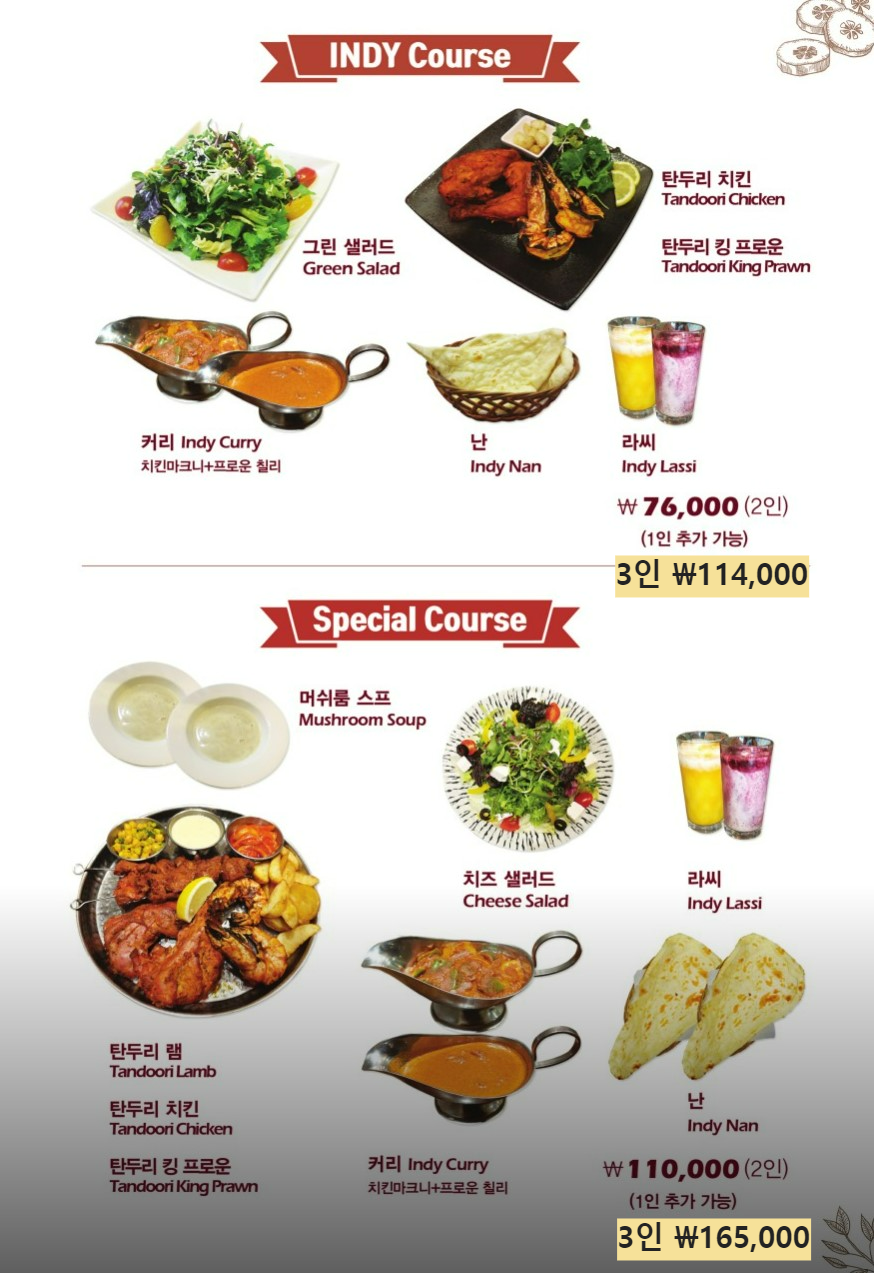 아래의 메뉴판은 인디(INDY)에서 공개한 메뉴 이미지예요.