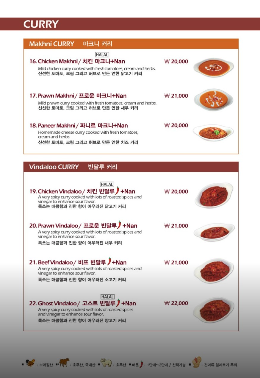 커리 (인도 카레) : 치킨마크니, 비프말라이파산다