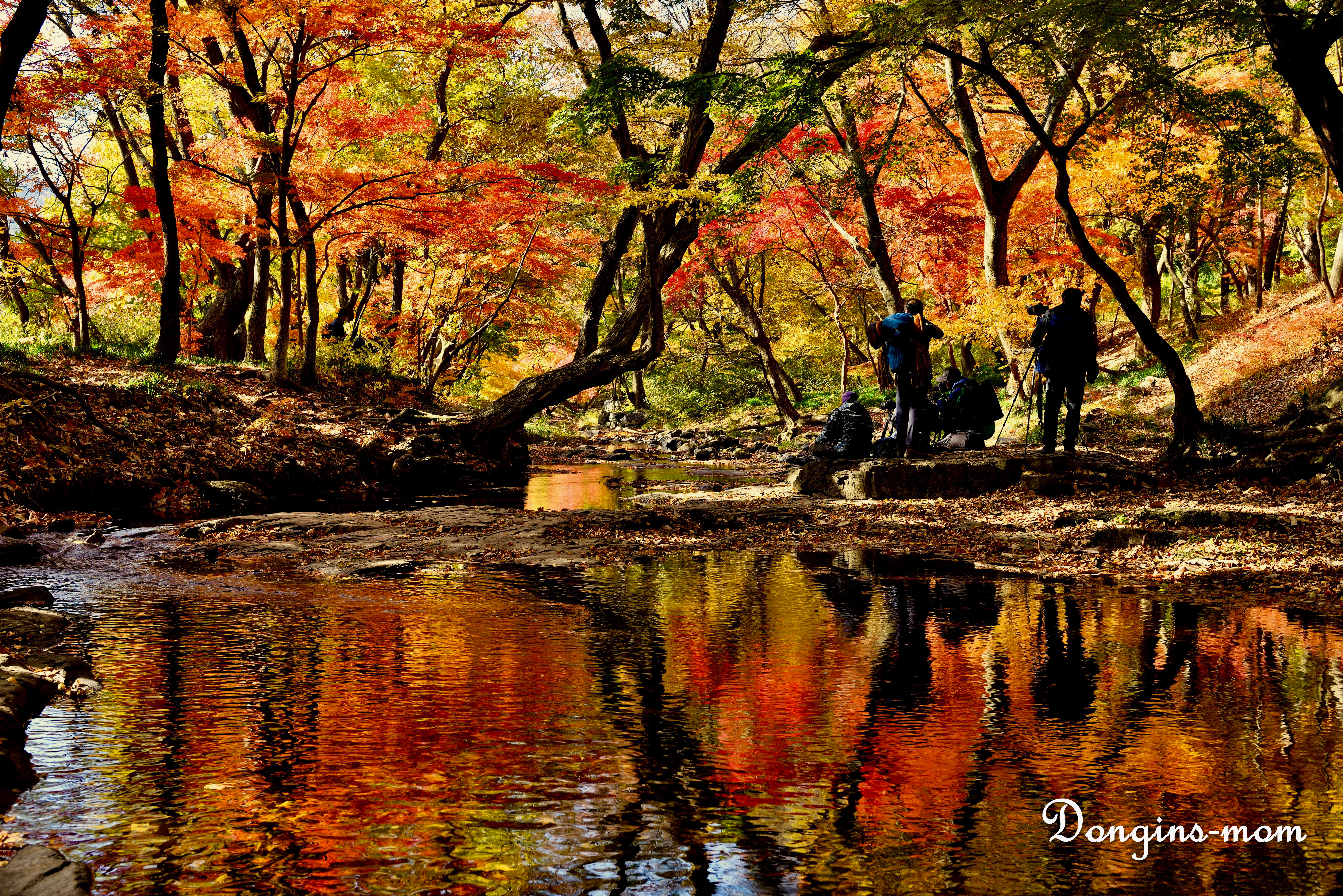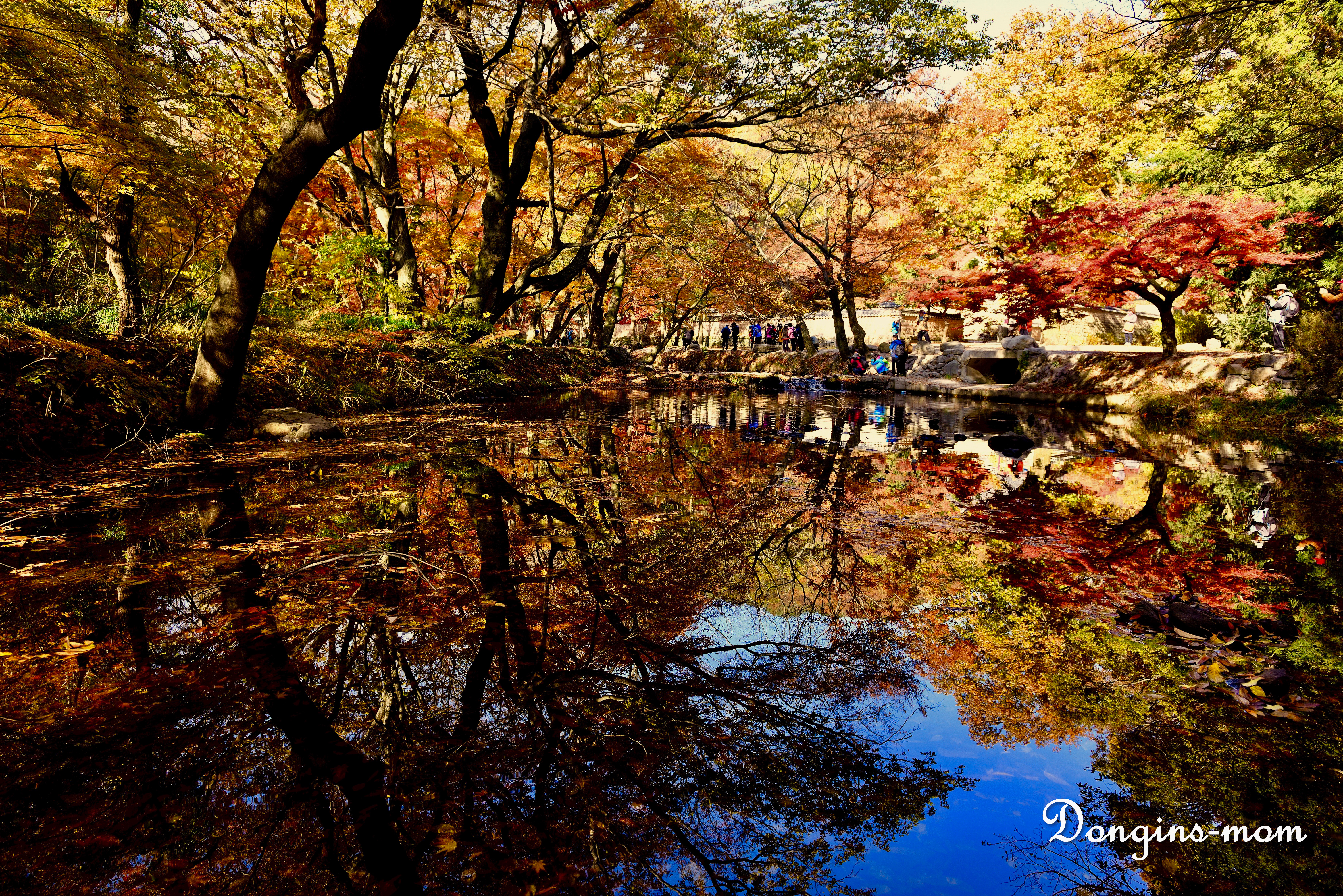 물에 빨간 단풍들이 떨어지면 또다른 절경을 보여주더라구요.