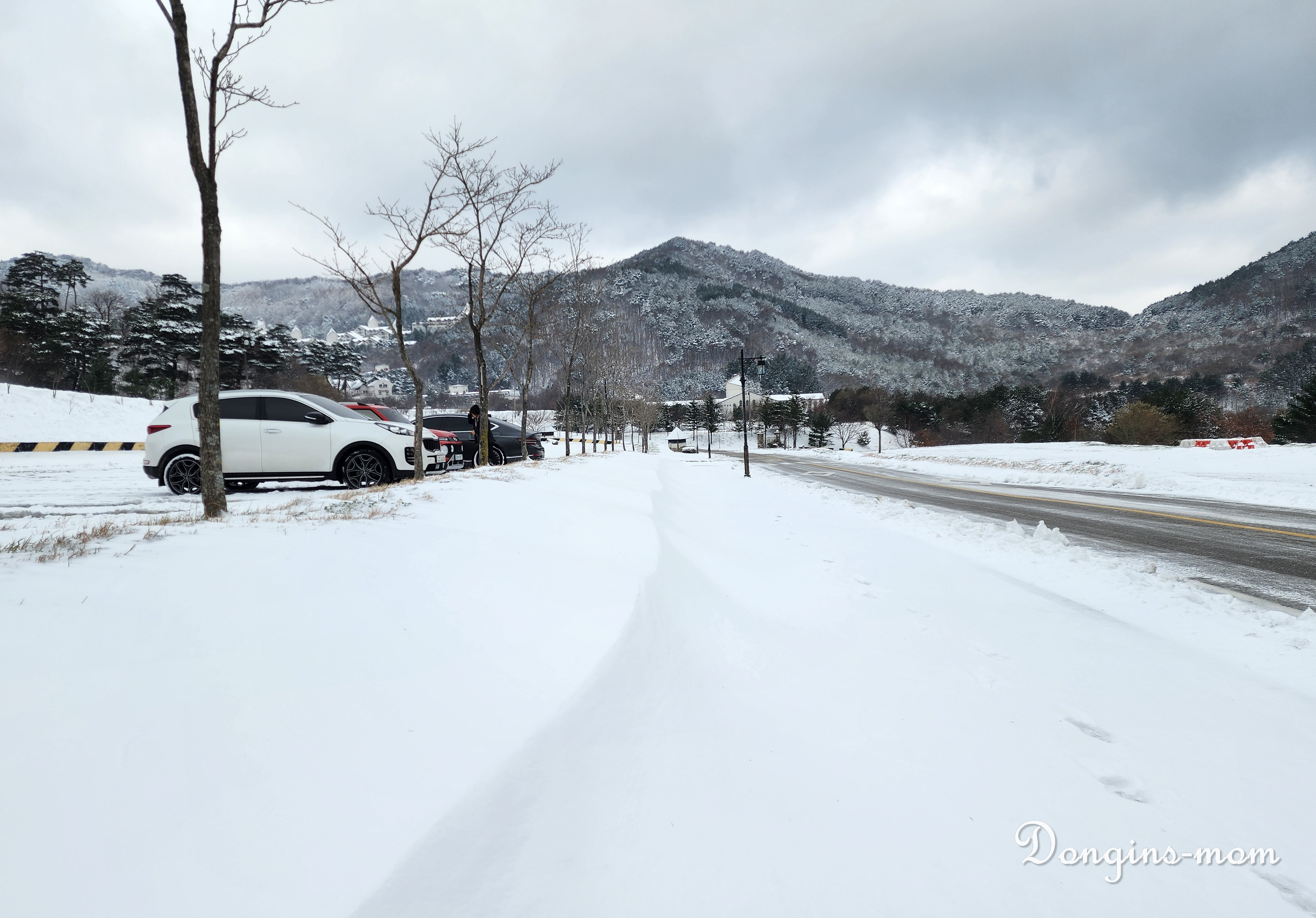 밤에 왔던 눈이 그대로 있어서