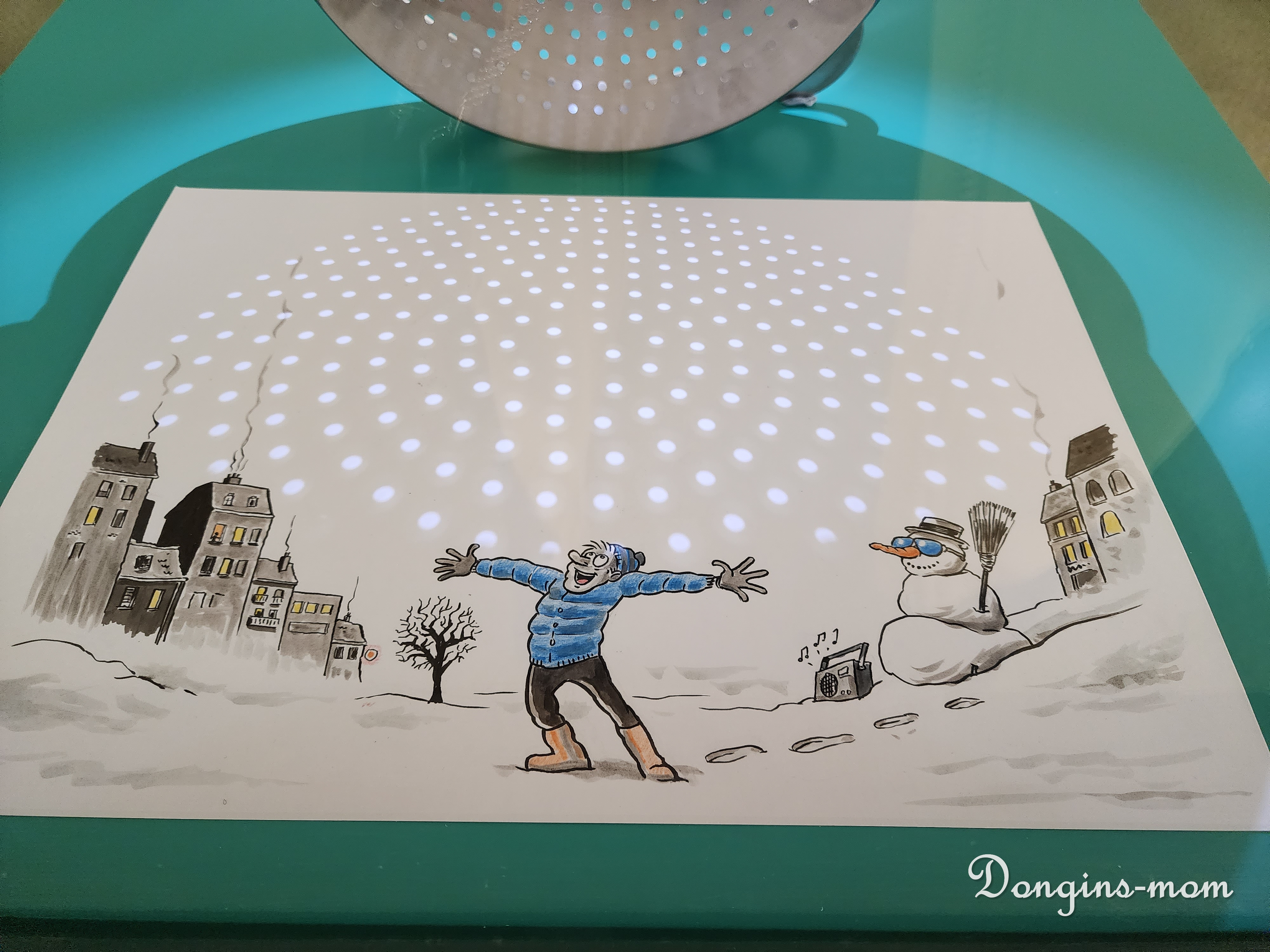 작업 당시 유리잔이 실제로는 렌즈처럼 작용해서 창문으로 보이는 둥근 모양은 실제 태양이 투사된 것이다.