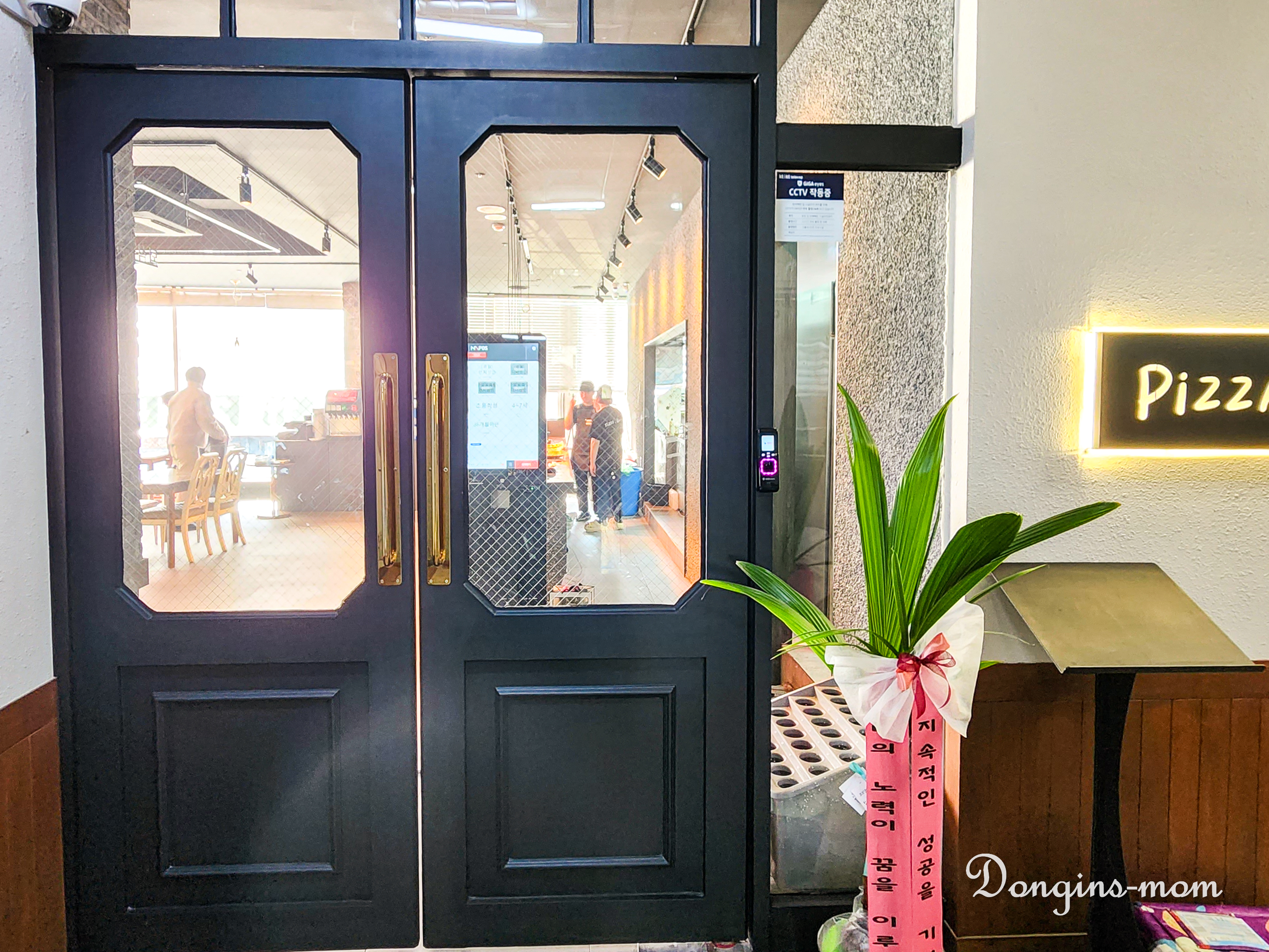새로 오픈한 피자뷔페 집에 크리스마스 트리가