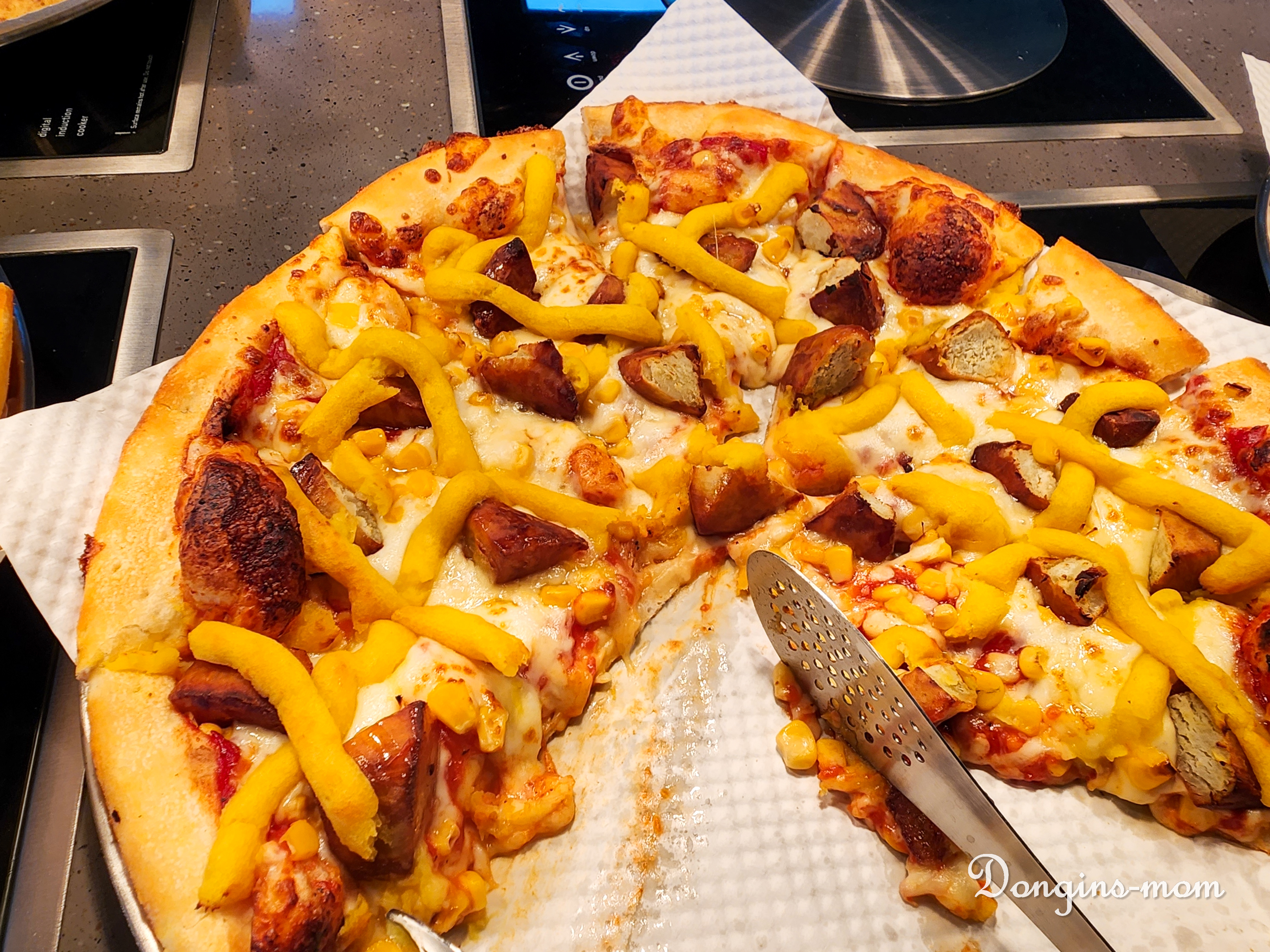 피자는 모두 인덕션 위에 올려져 있고,