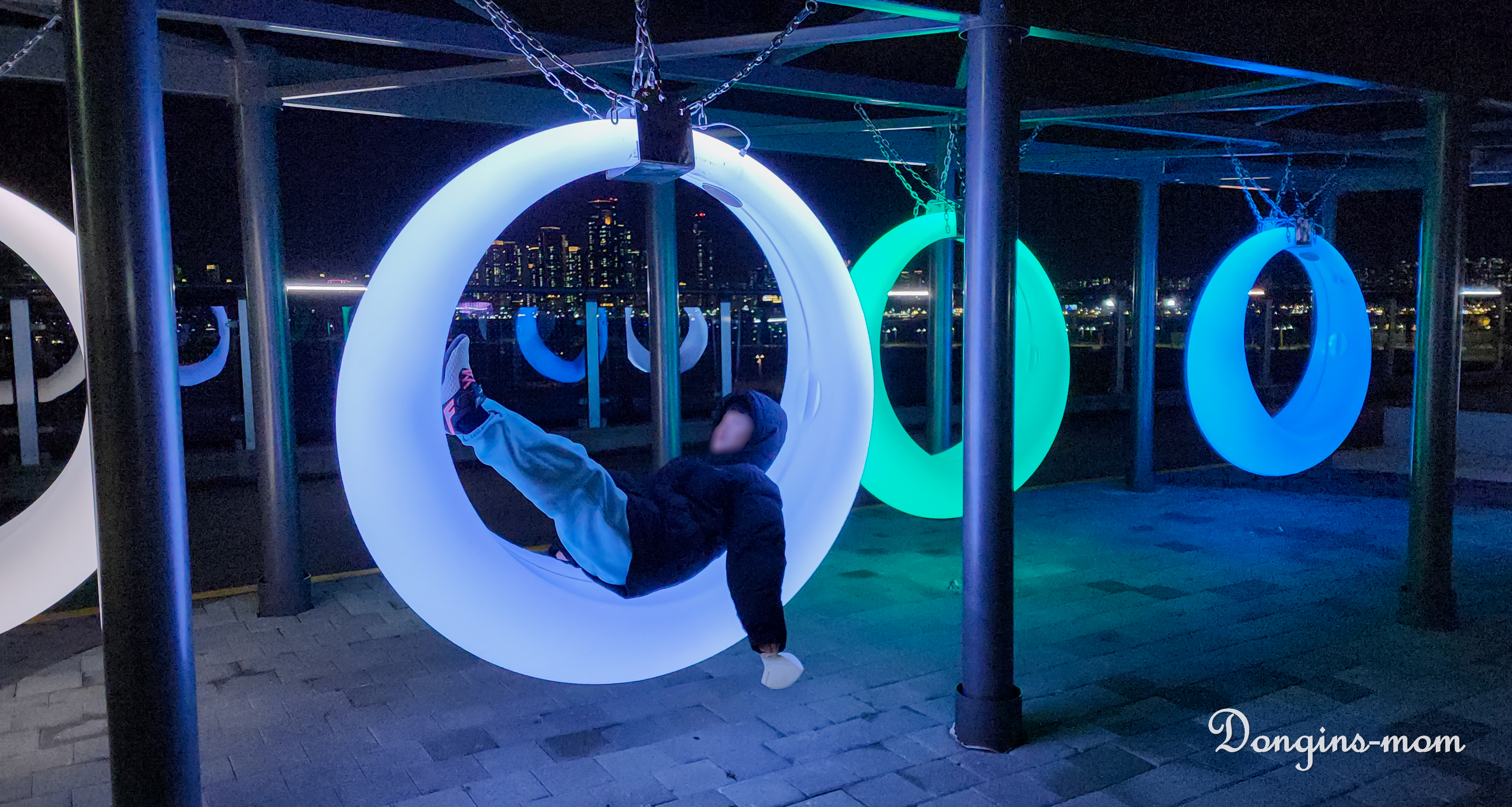 LED 빛과 개성 있는 모양으로 시각적 재미를 더한 어린이 놀이 시설