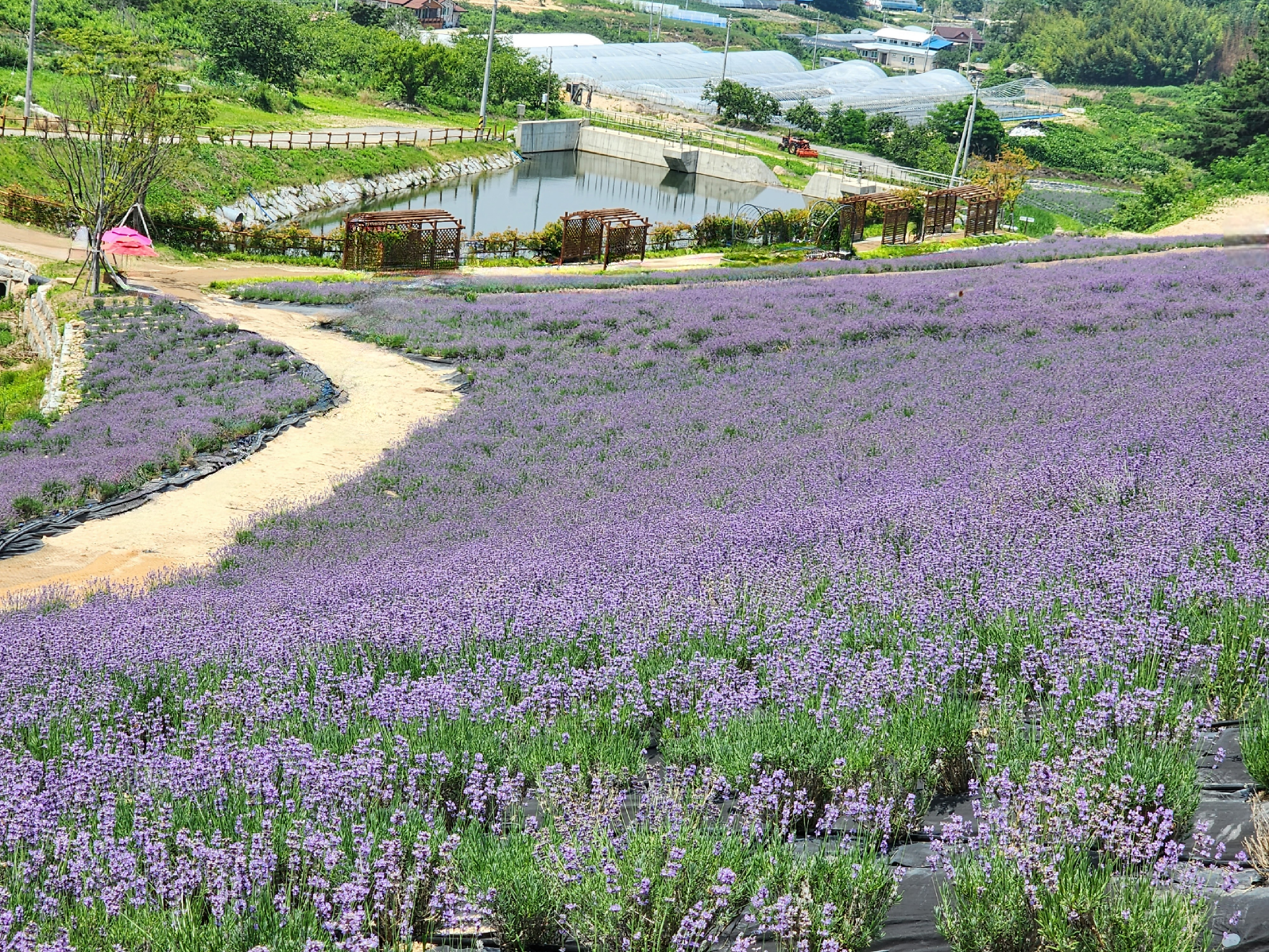 산책로 주변으로 보라빛 라벤더 들이 가득해요.~