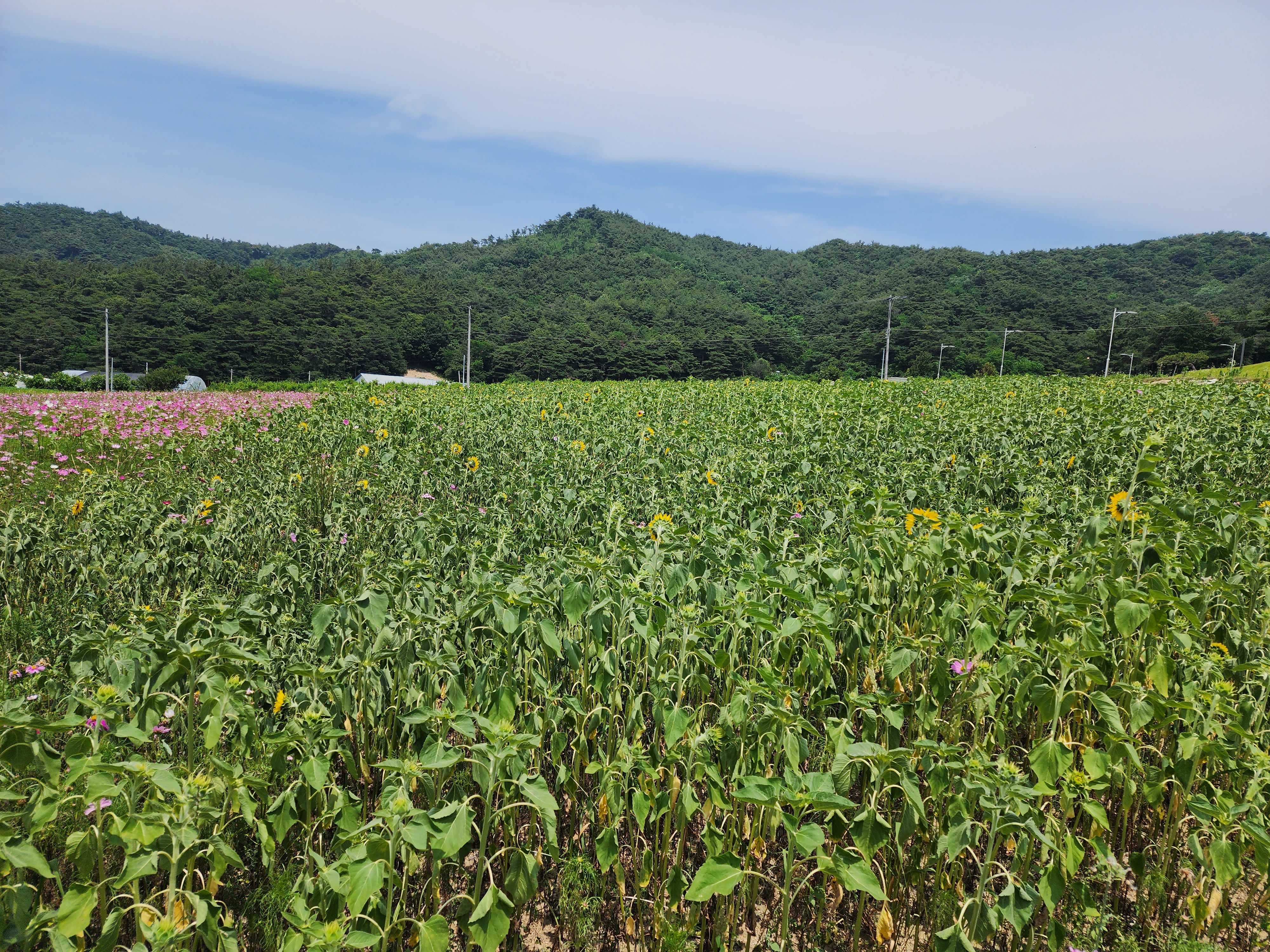 얼굴을 보려면 해바라기 밭을 가로질러 가서