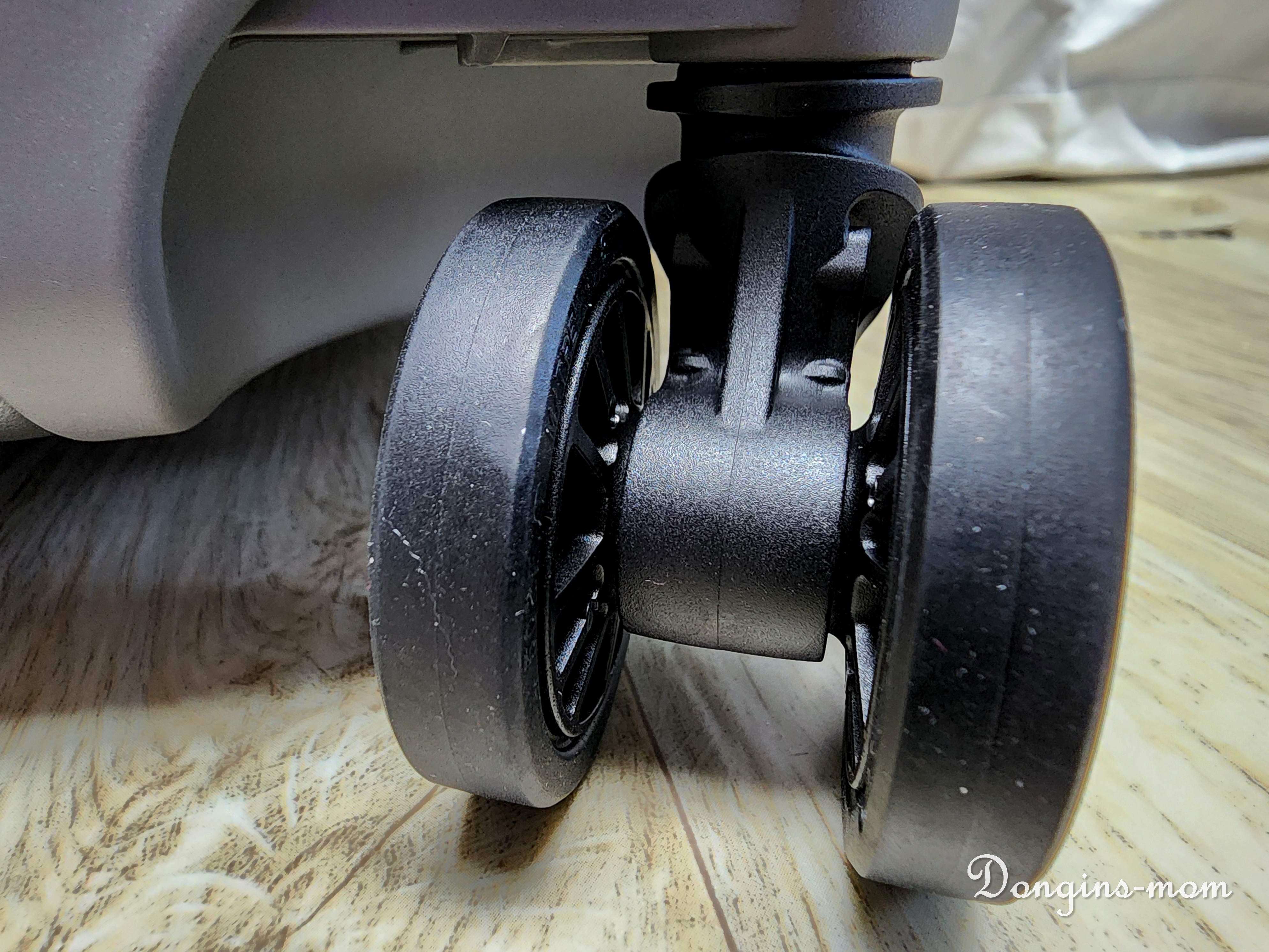 가방을 열때마다 바퀴가 자동으로 착! 눕지는 않지만 바퀴가 좀 덜 누워도 사용에 전혀 불편함은 없더라구요.