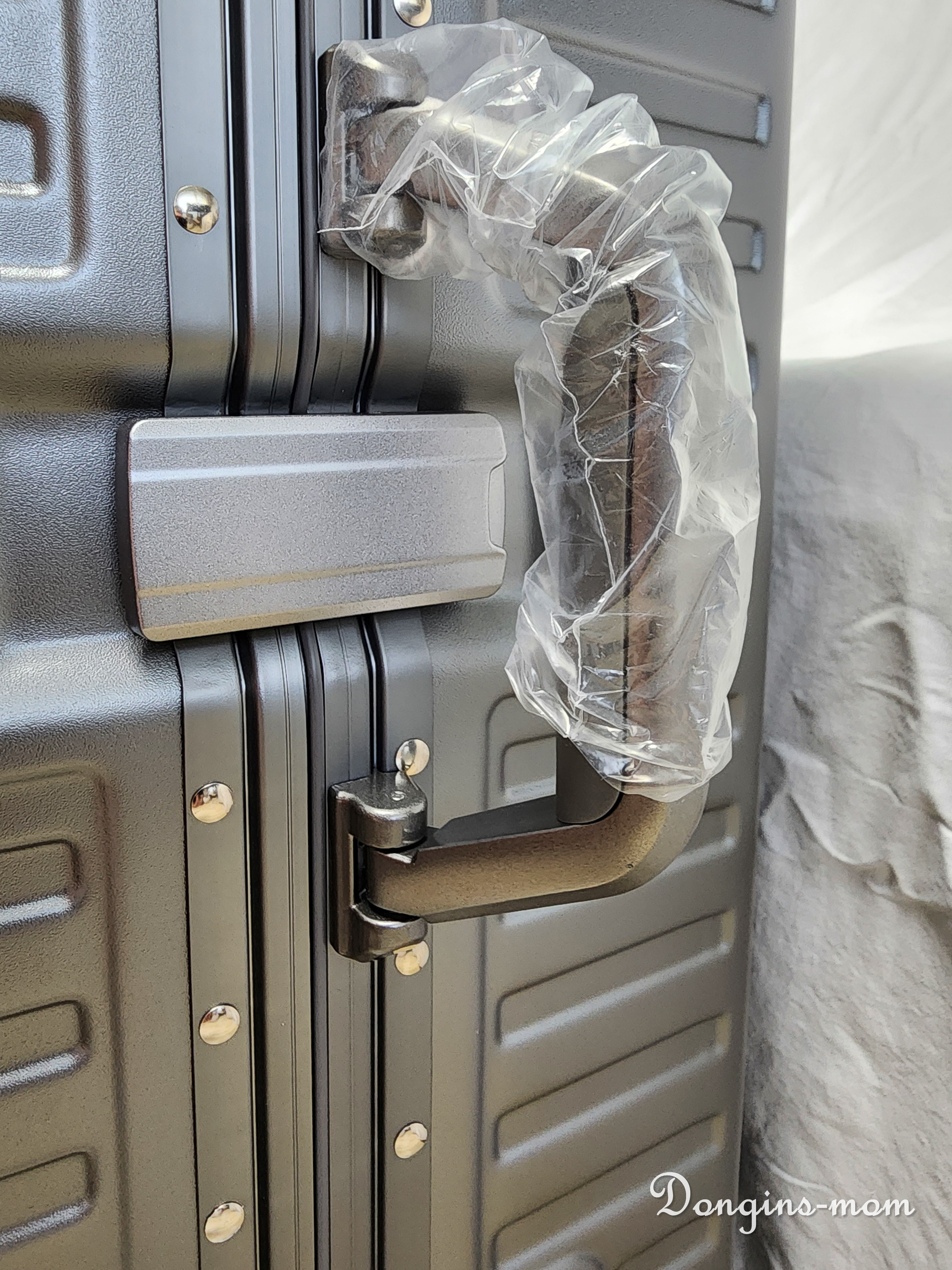캐리어 윗면, 옆면에 달려있는 손잡이는 반자동식 이예요.