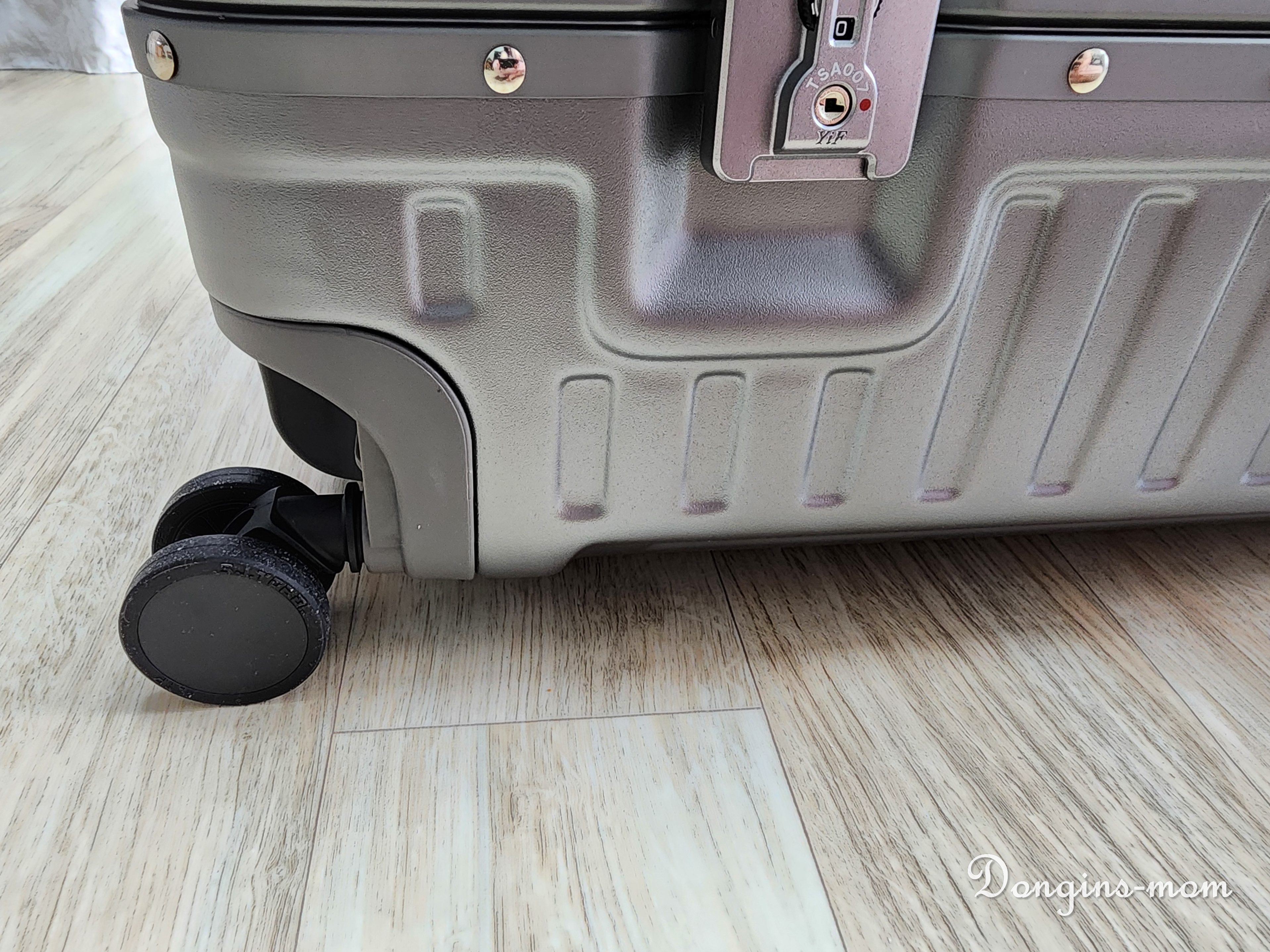 가방을 열때마다 바퀴가 자동으로 착! 눕지는 않지만 바퀴가 좀 덜 누워도 사용에 전혀 불편함은 없더라구요.