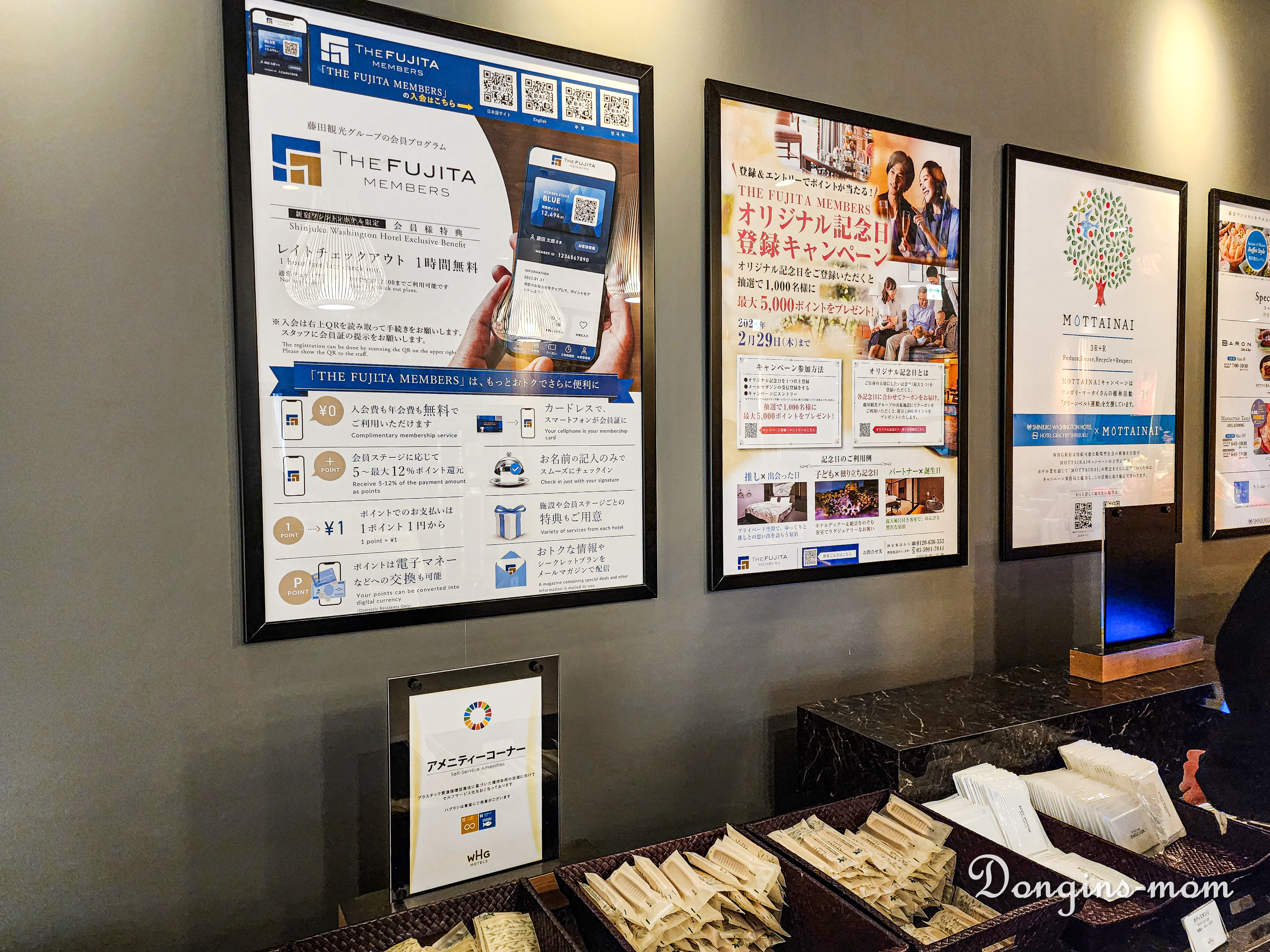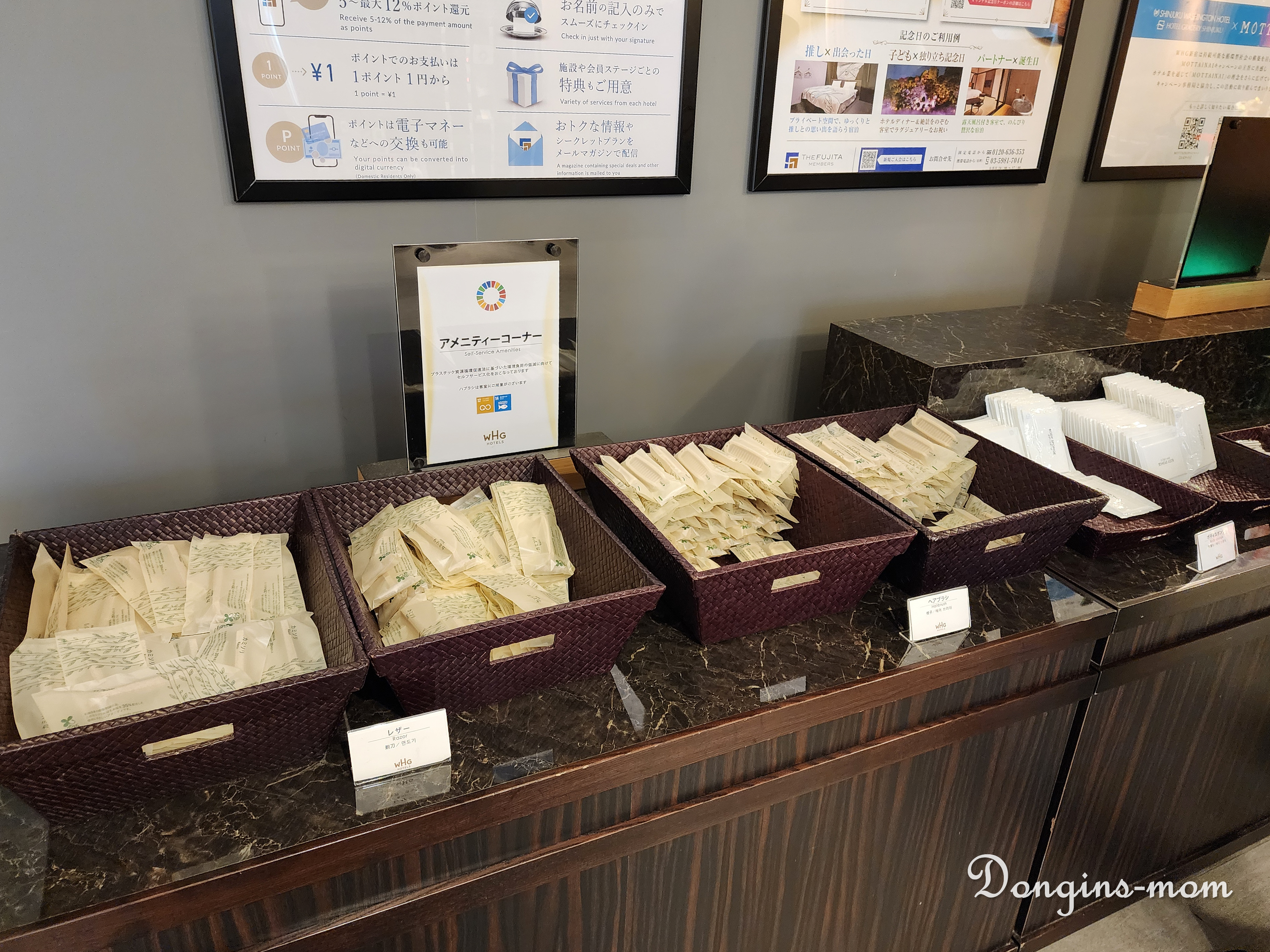 체크인 후 엘레베이터 쪽으로 향하는 길에 어메니티가 준비되어 있어요.