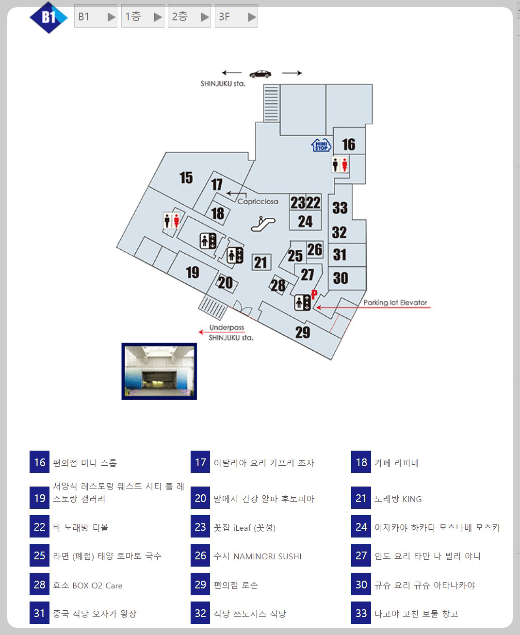 지하로 가는 길은 신주쿠 역이서 신주쿠 워싱턴 호텔까지 쭉 연결되어 있어요.
