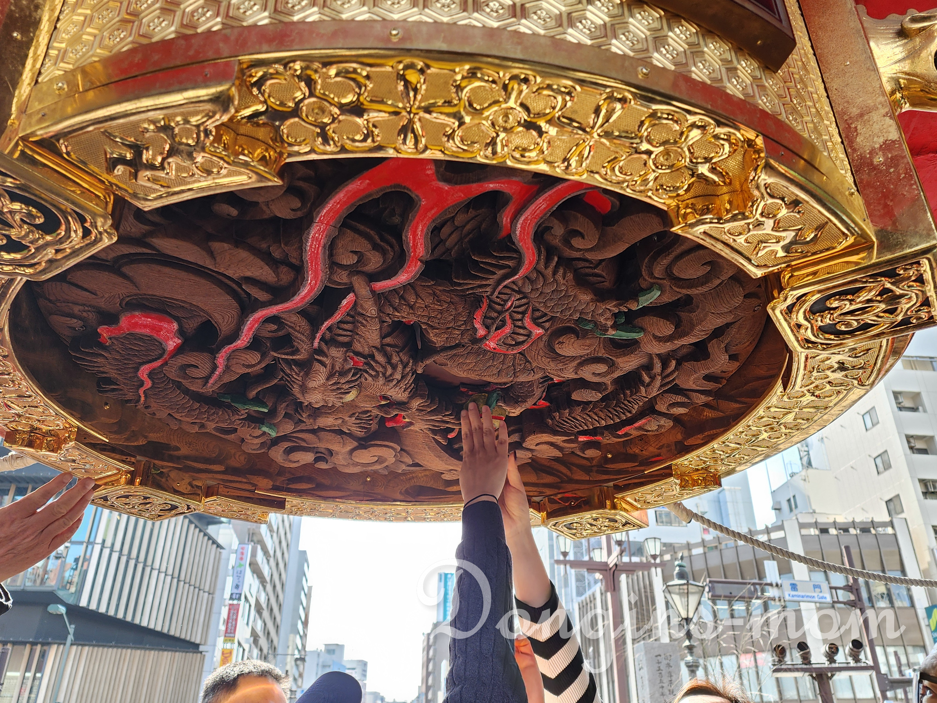일본 도쿄 아사쿠사 센소지 카미나리몬 (붉은 대제등) 아래에 장식된 용 조각. 용이 가지고 있는 여의주를 만지면 복이 들어온다고 해요.