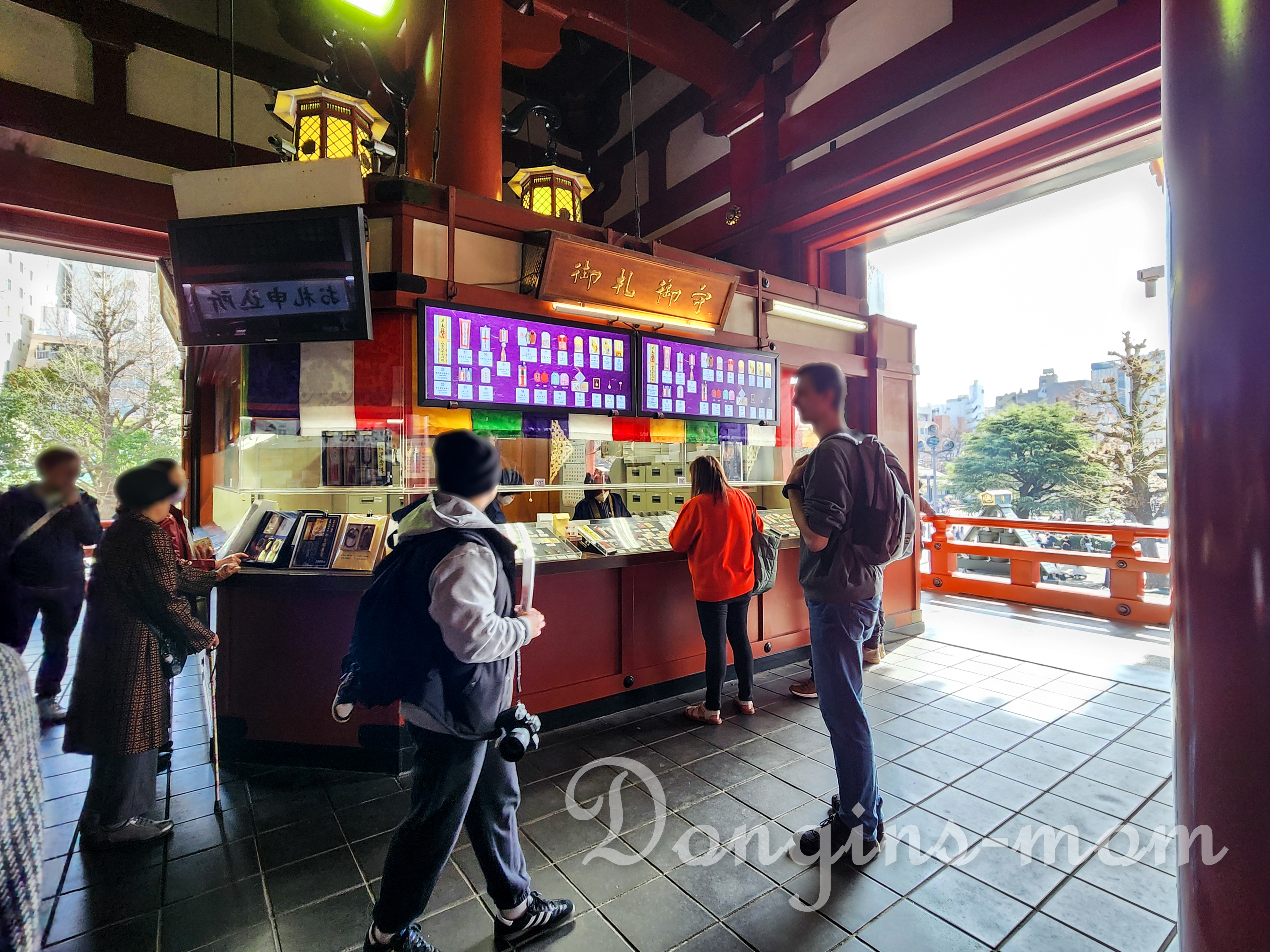 아사쿠사 세소지 본당 안의 부적파는 곳, 소원비는 곳, 운세 보는 곳,