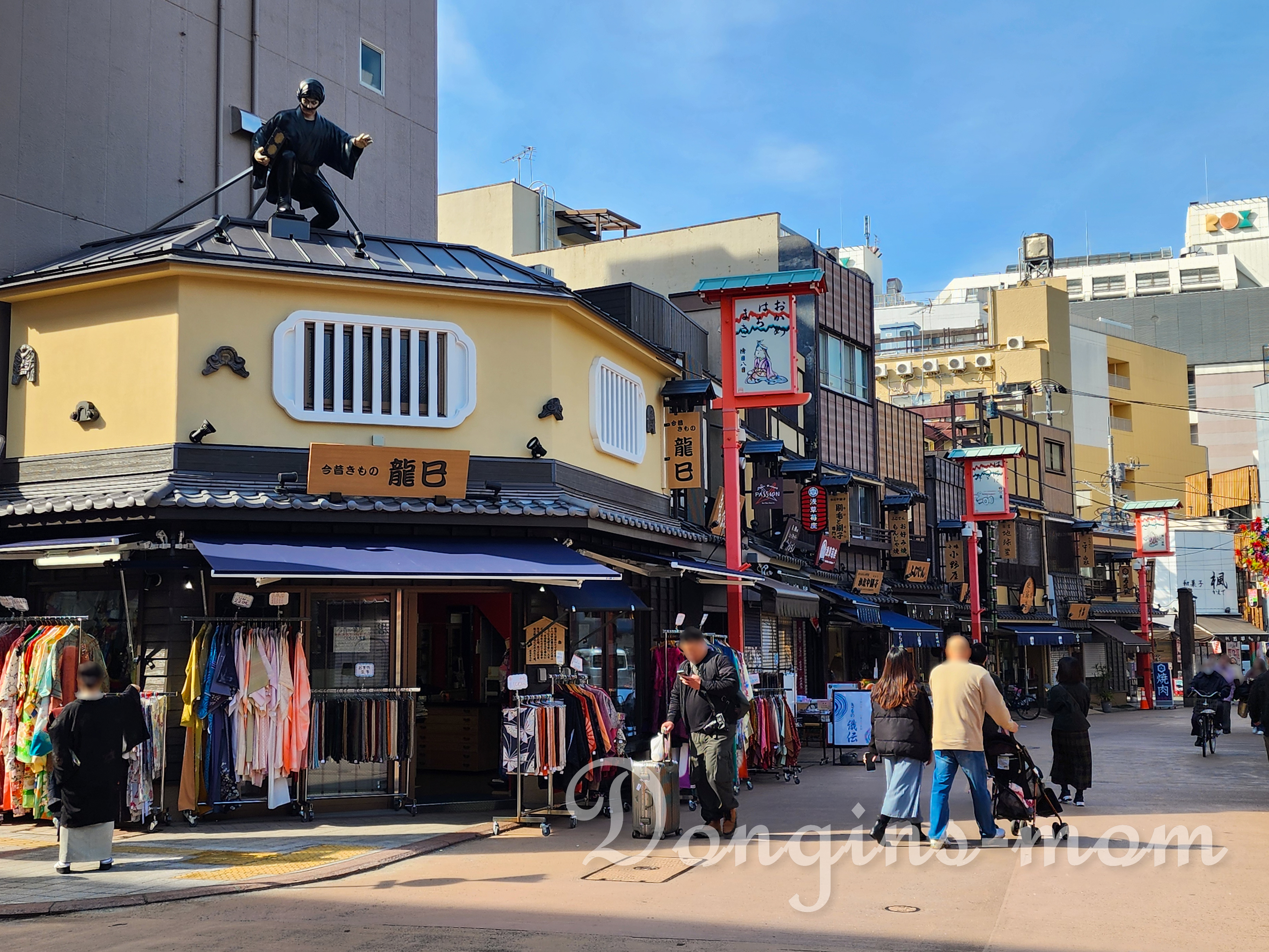카미나리몬에서 호조몬까지 약 250m 에 걸쳐 참배길 양쪽에 점포가 늘어서 있어요.