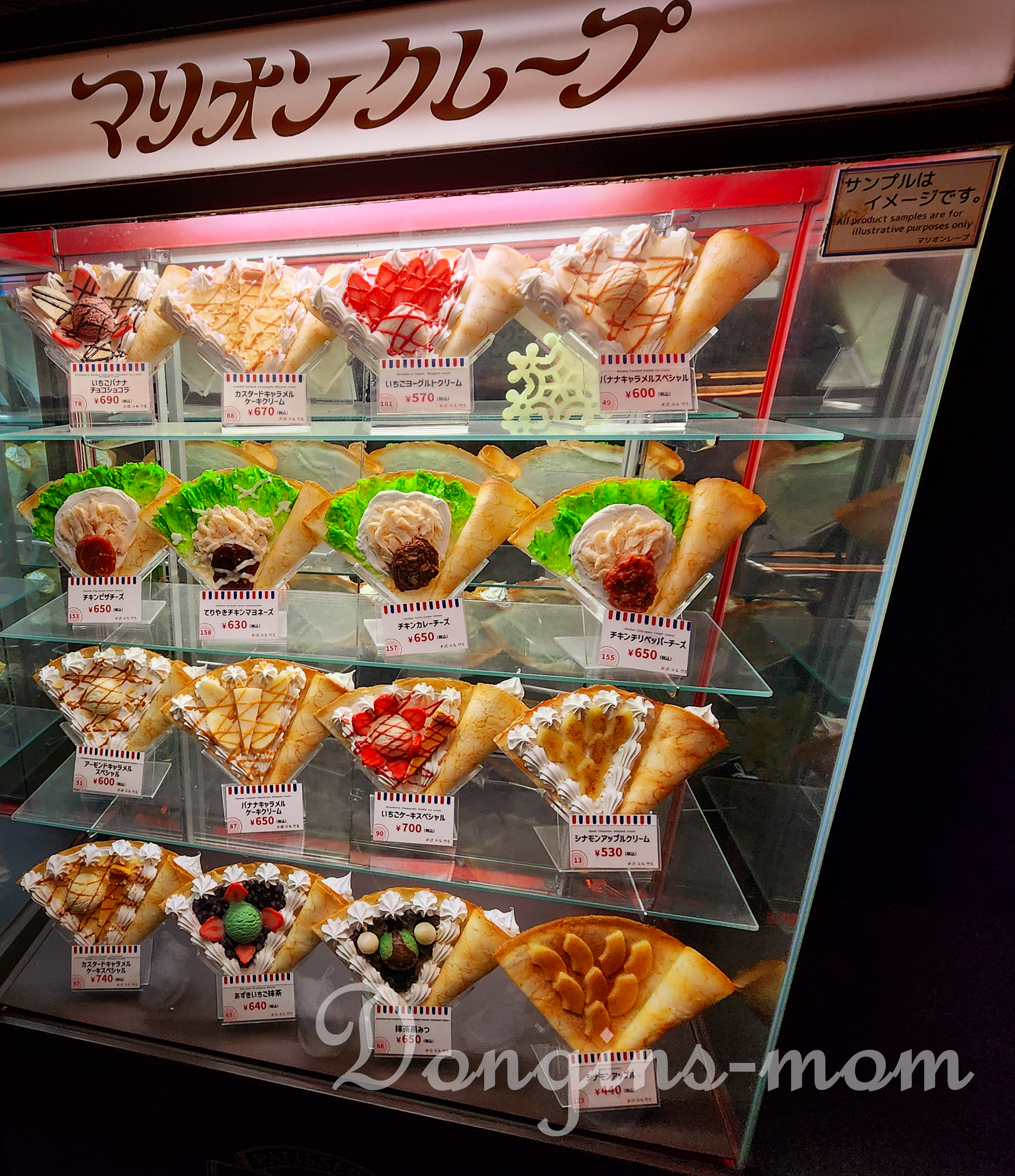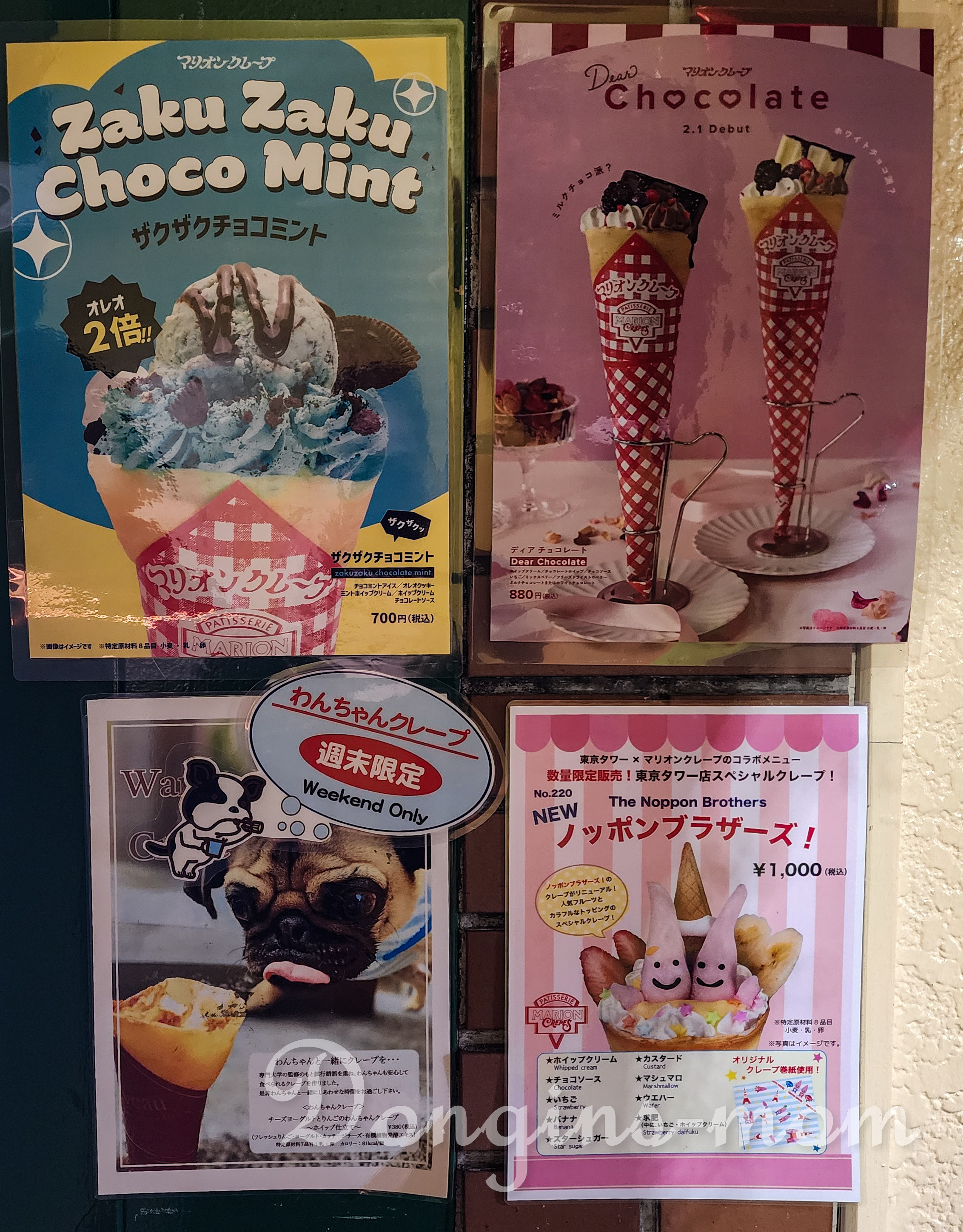 마리온 크레페 도쿄 타워점. 크레페 메뉴들.