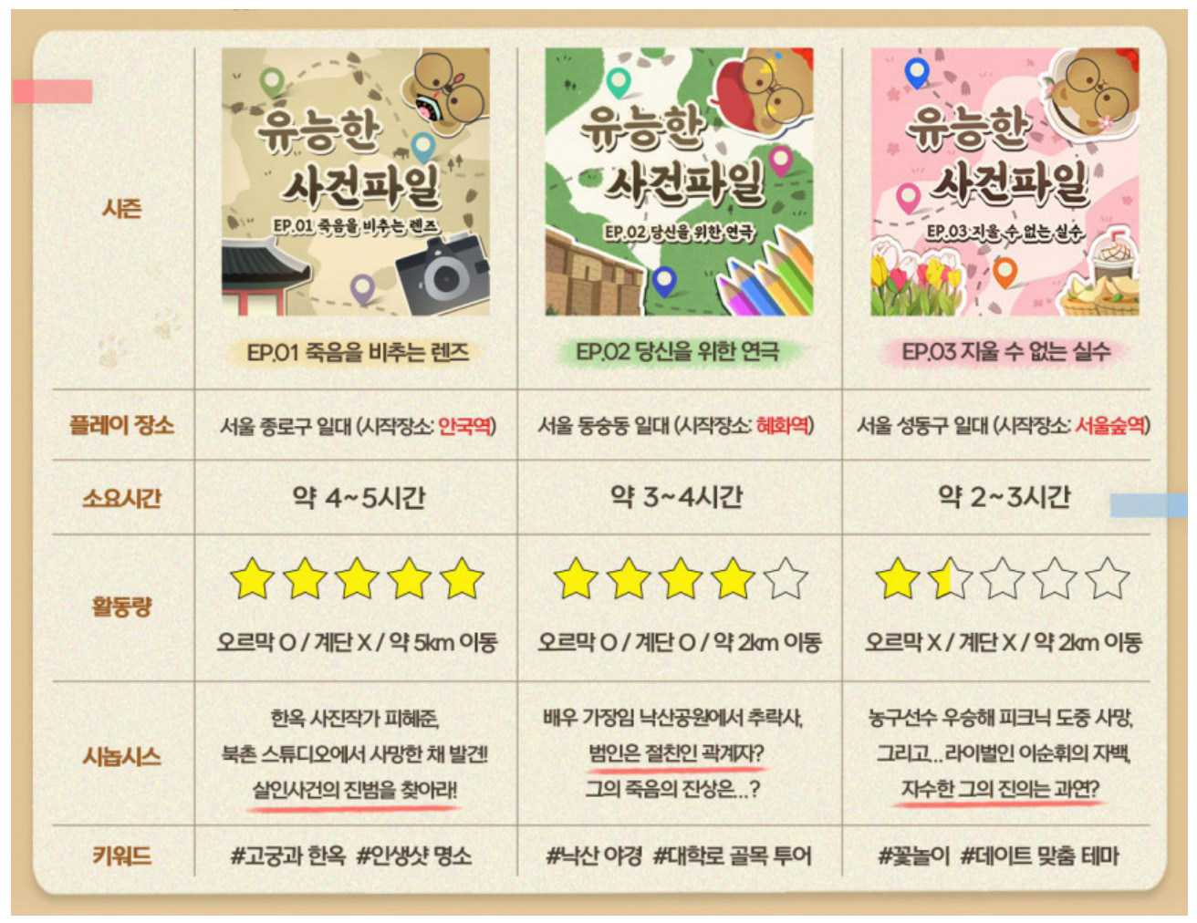 << 서울 야외방탈출 이색 데이트 추리게임, 안국역, 혜화역, 서울숲역 >>