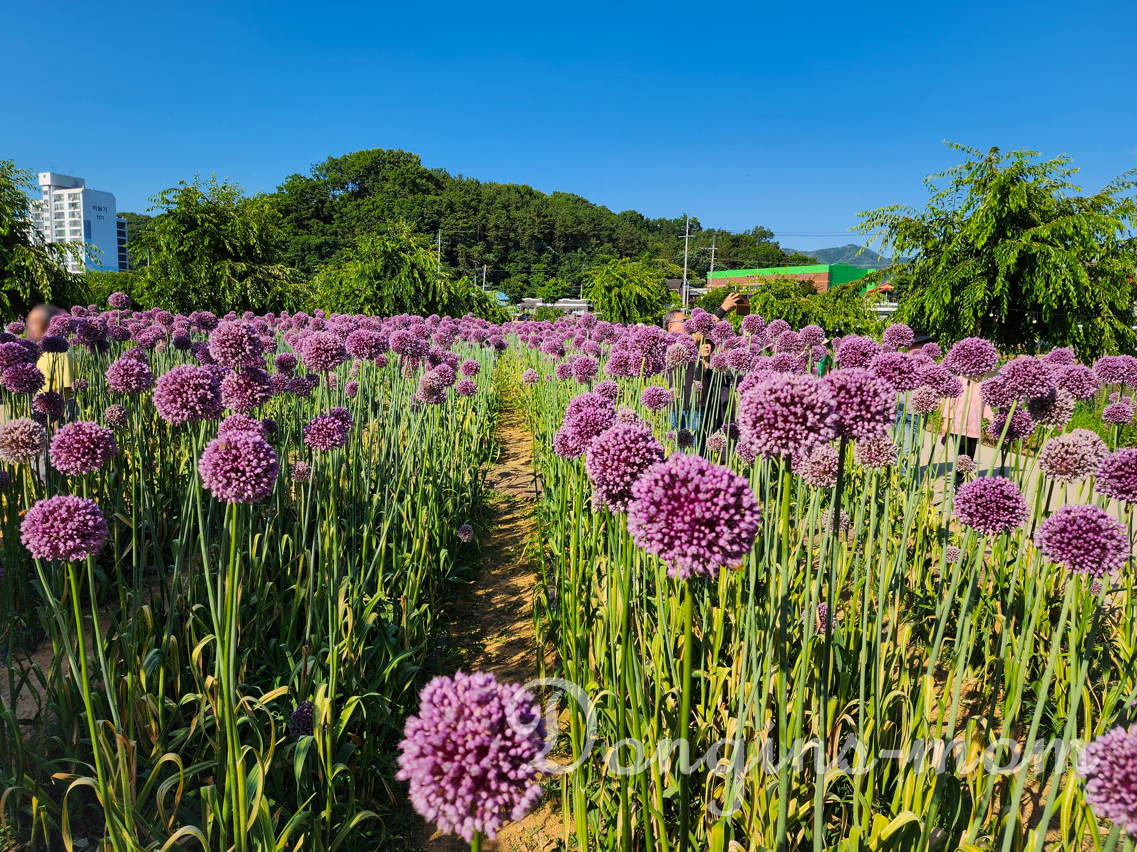 보랏빛의 코끼리마늘 꽃도 볼 수 있습니다.