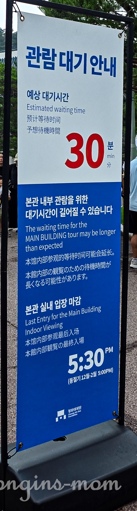 예약한 입장 시간과 관련 없이 본관에 오면 순서대로 줄을 섭니다.