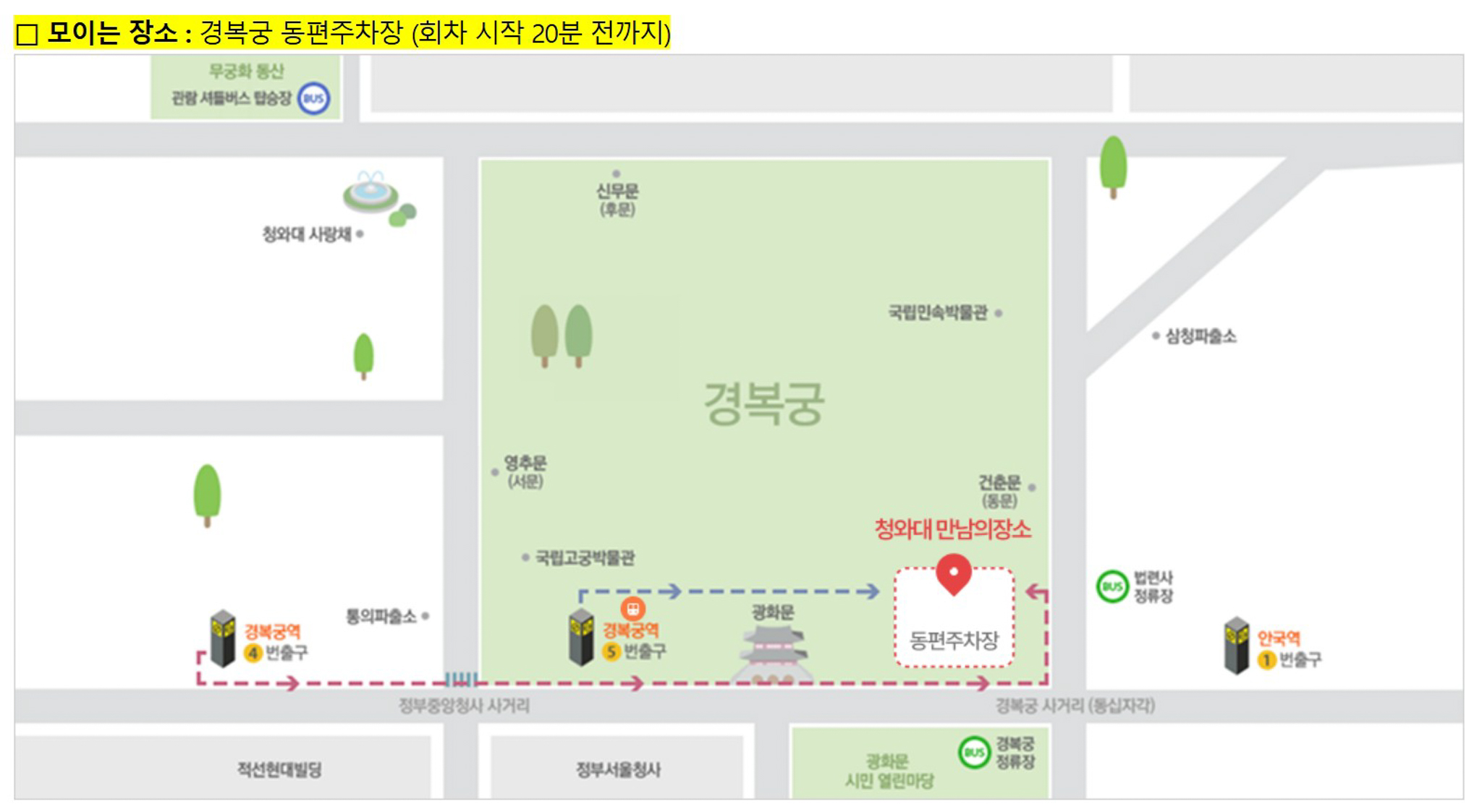 출발 장소 : 경복궁 동편주차장 (청와대 만남의 장소)