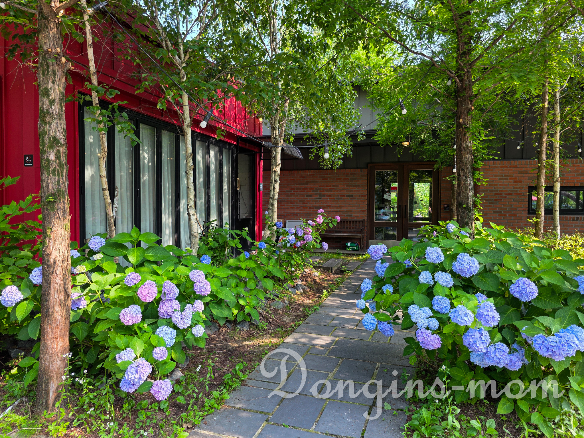 "자작나무 커피" 카페의 정원에는 여름에 수국이 핍니다.