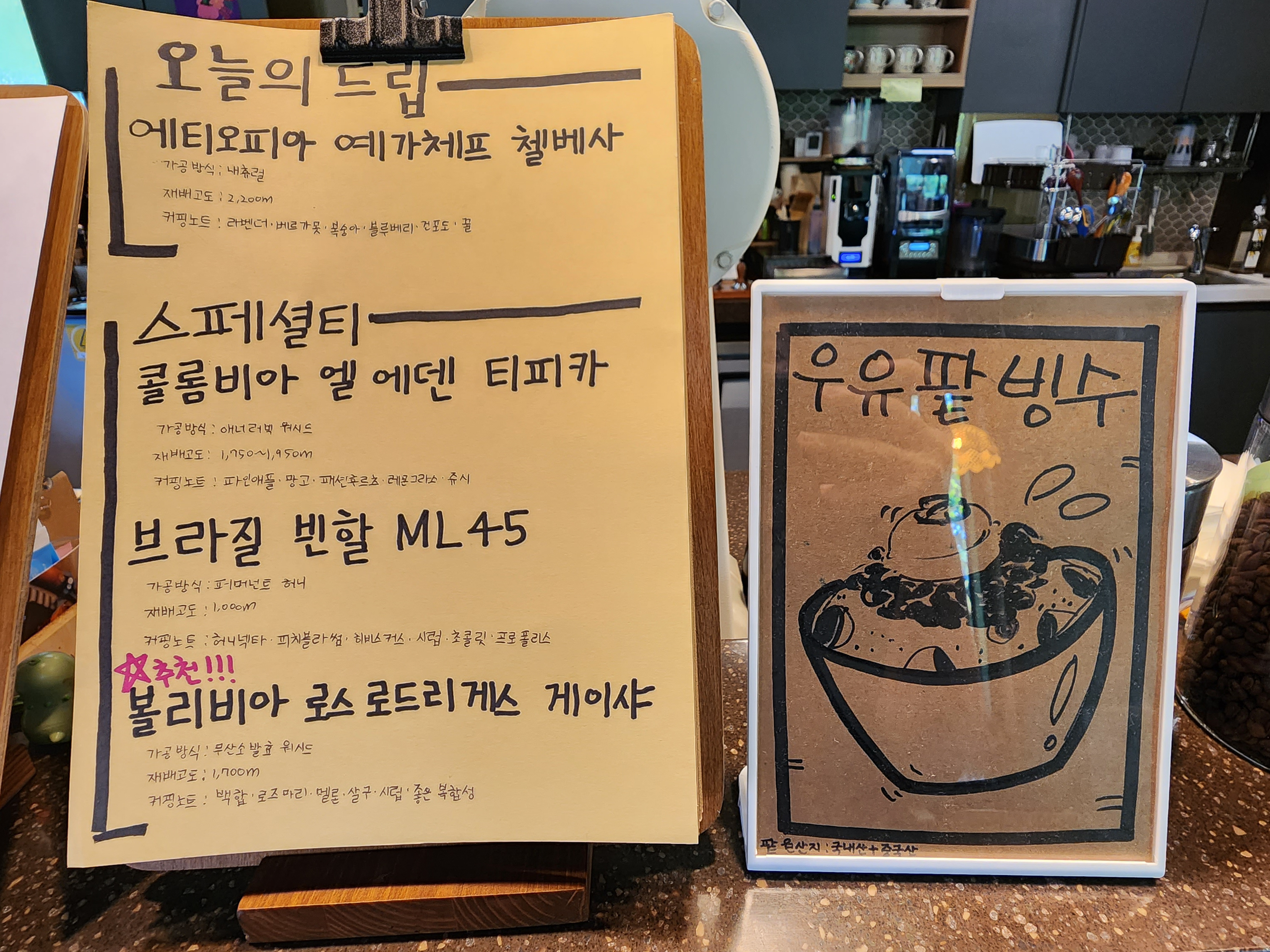 블랜딩 커피, 필터드립커피가 다 있으며