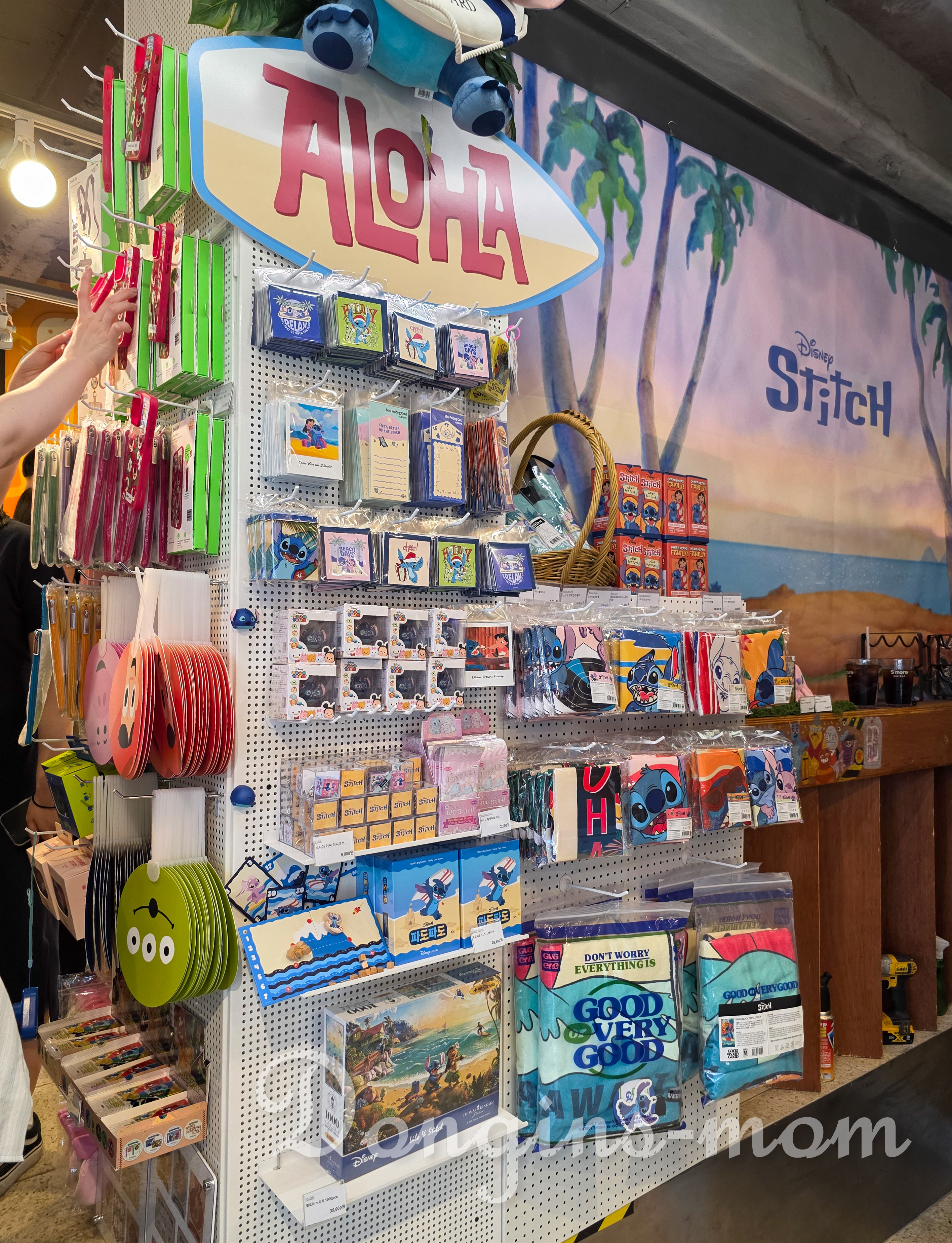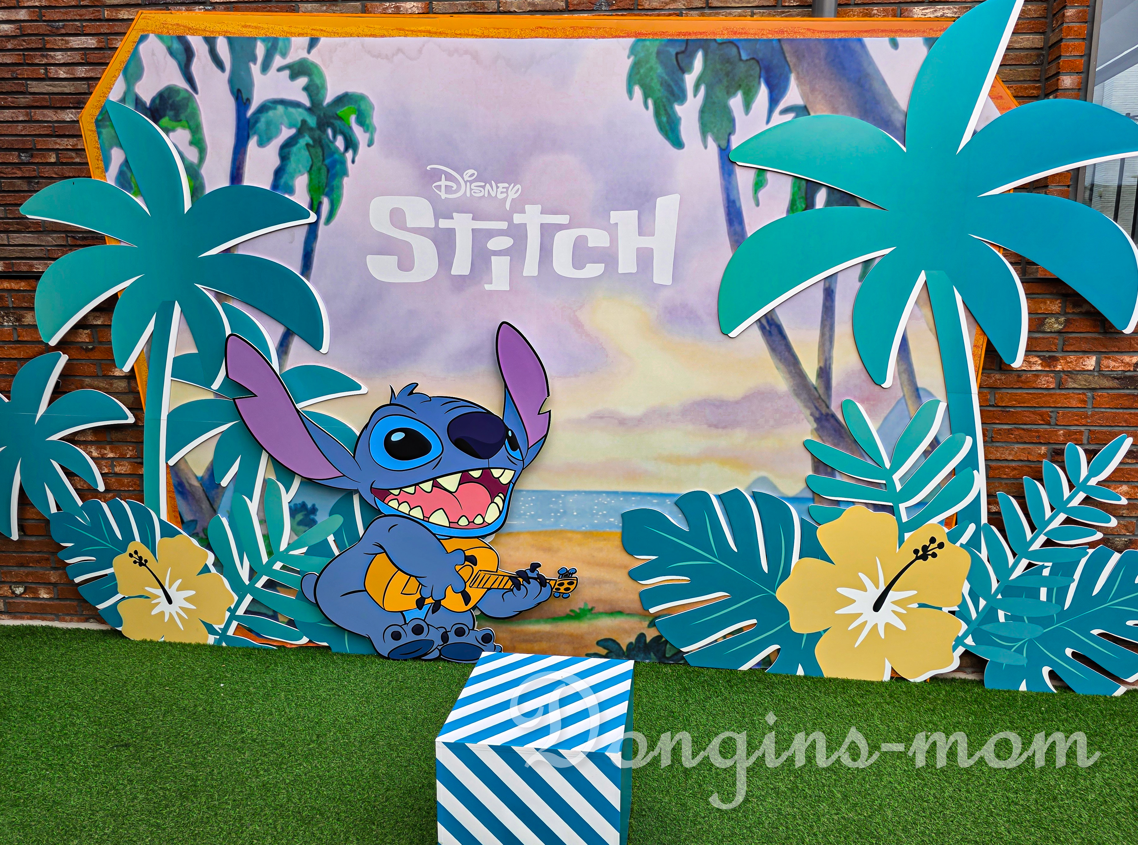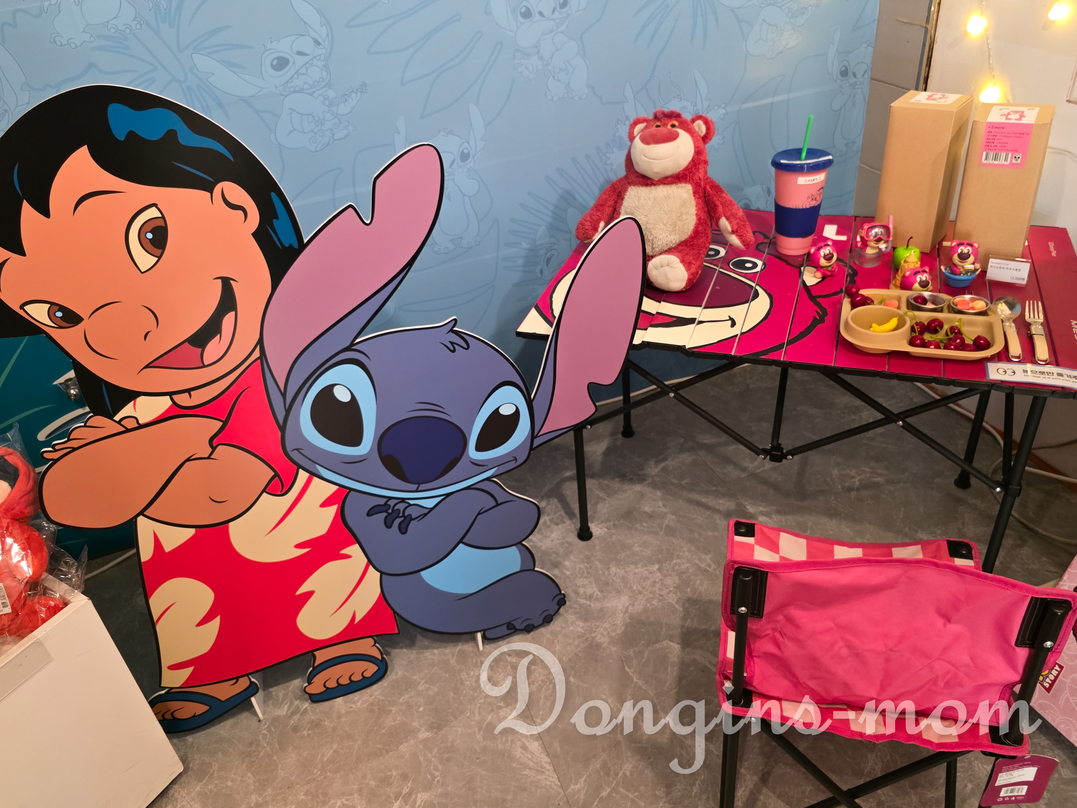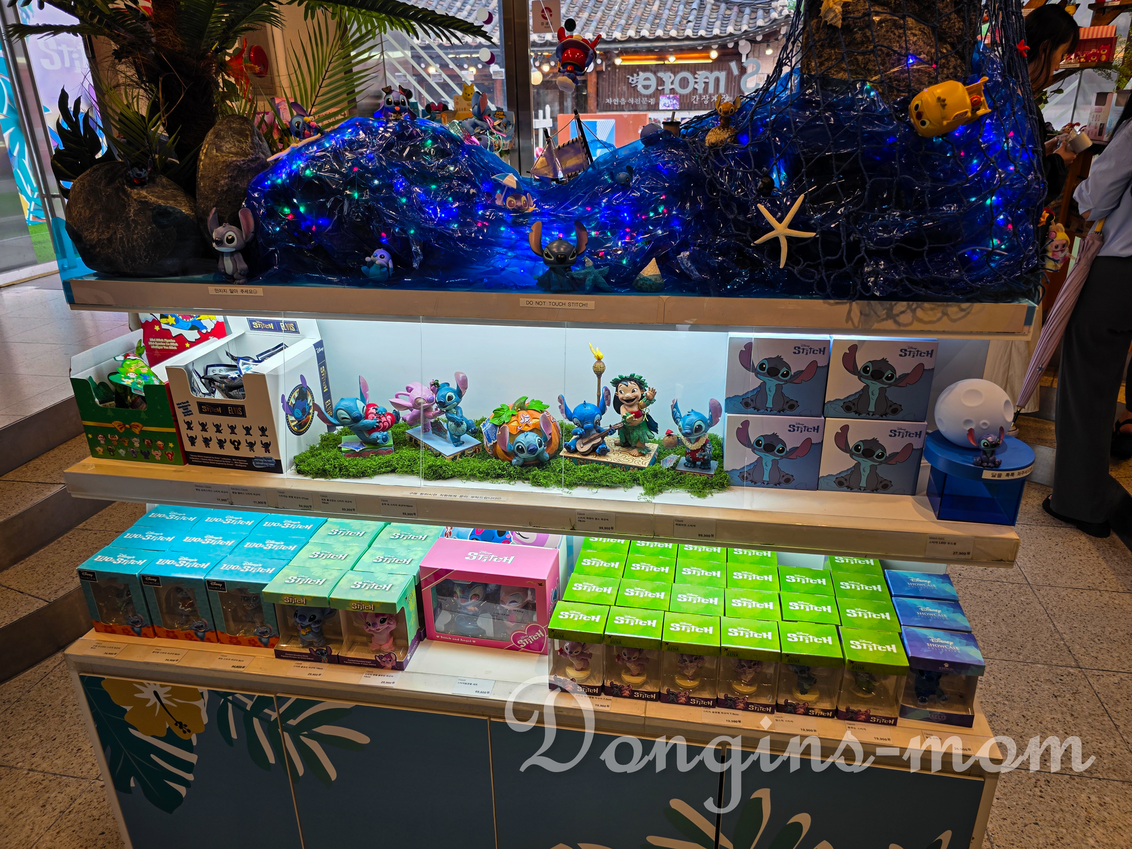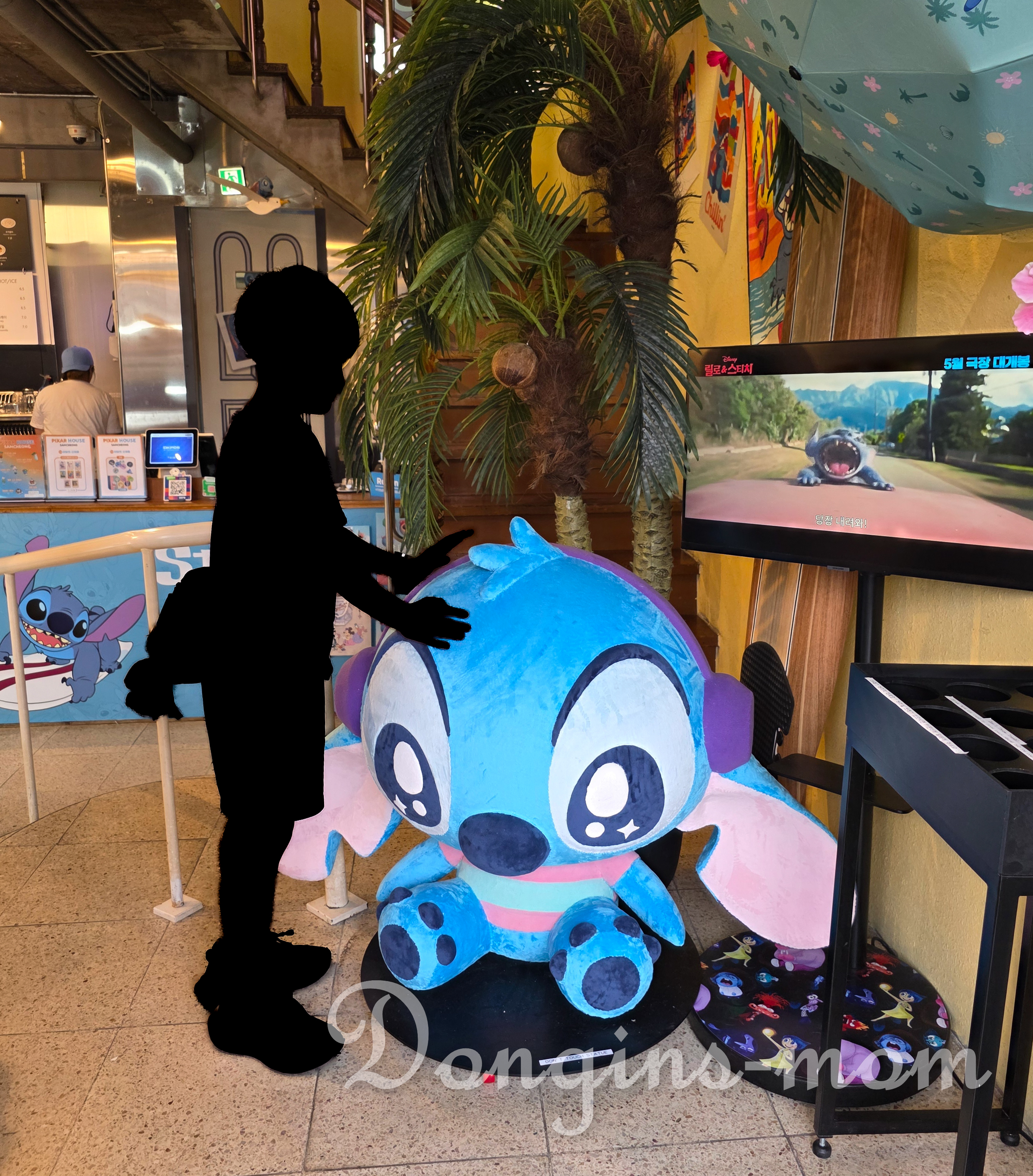 특이 입구에 있는 커다란 인형 스티치는 우리 집 어린이가 홀딱 반해버렸습니다.