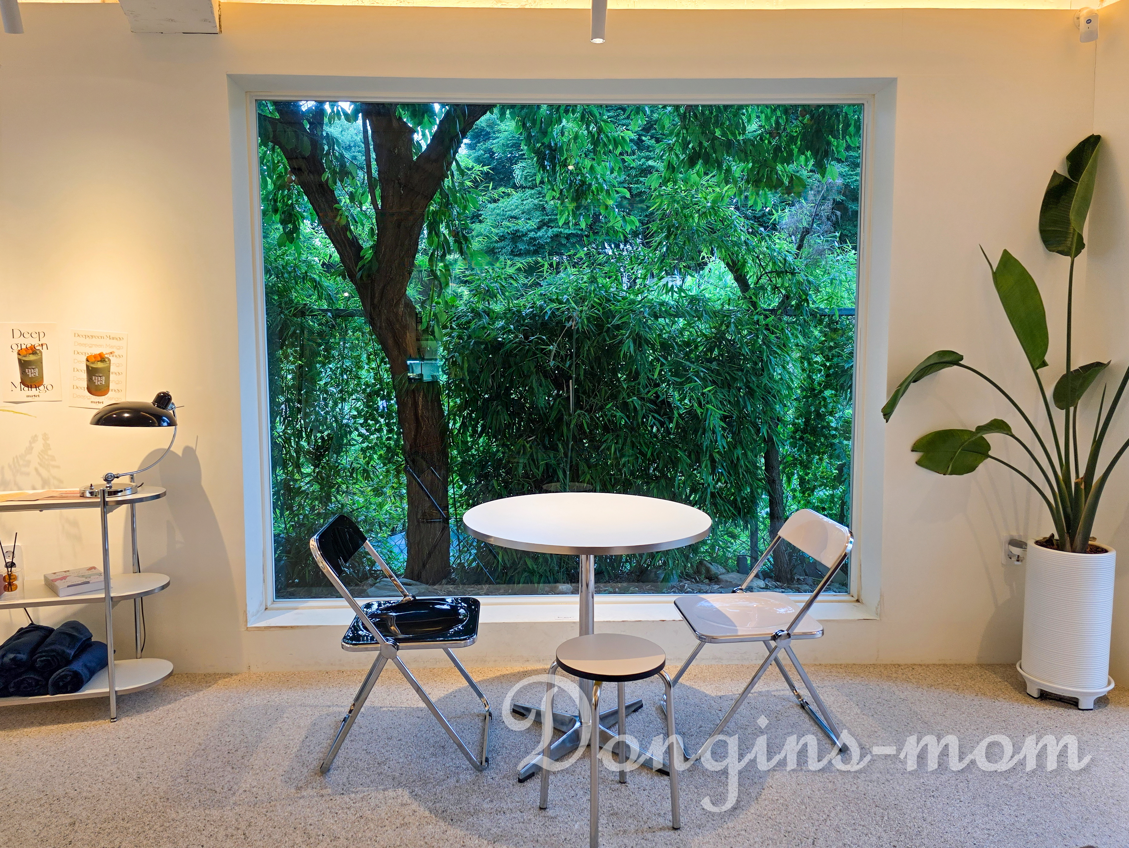통창 밖을 바라보면서 앉아 있으면 건물의 답답함도 안 느껴집니다.