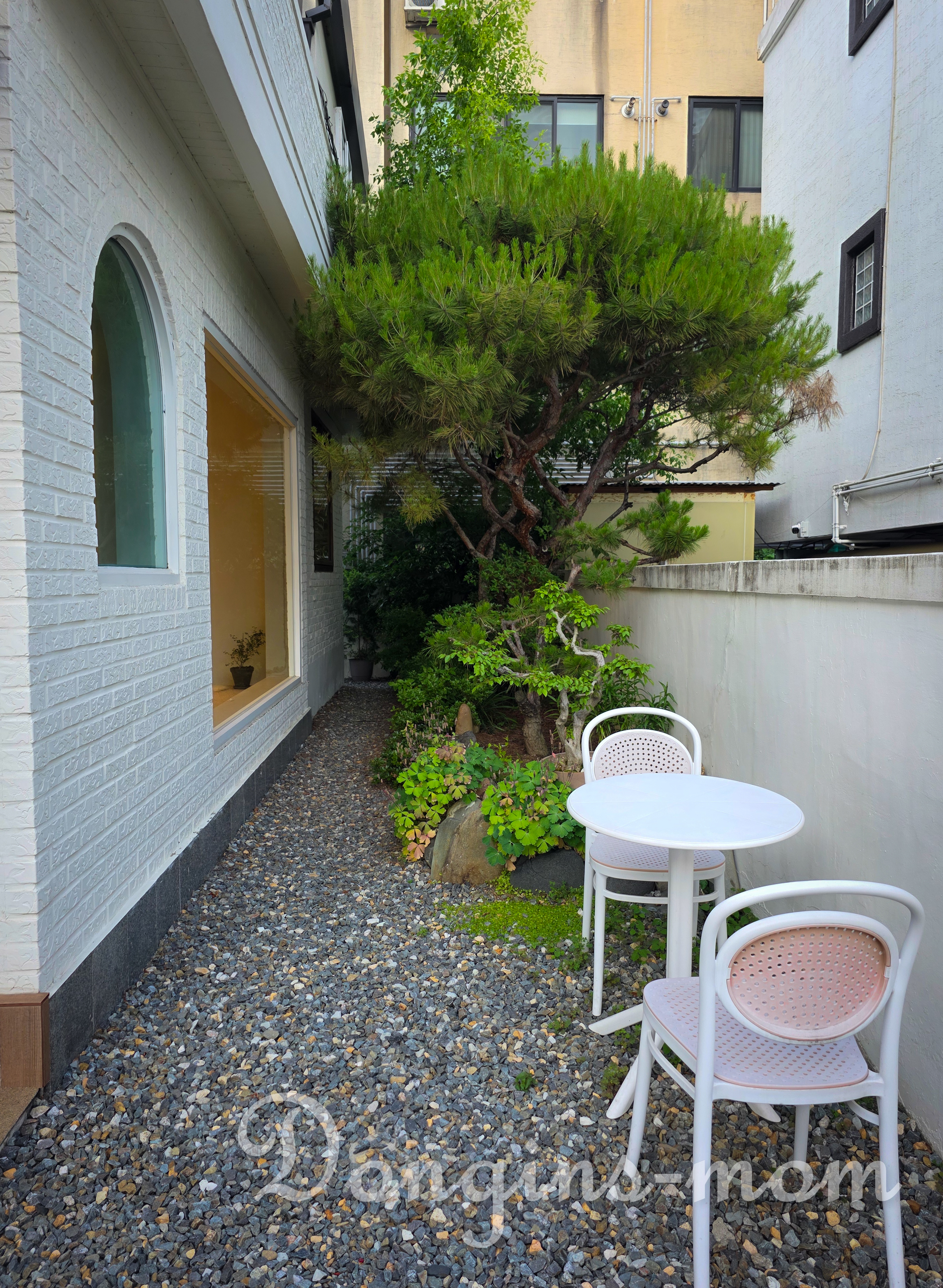 화이트톤의 건물과 마당에 깔린 자갈이 깔끔한 주택의 느낌이 느껴졌습니다.