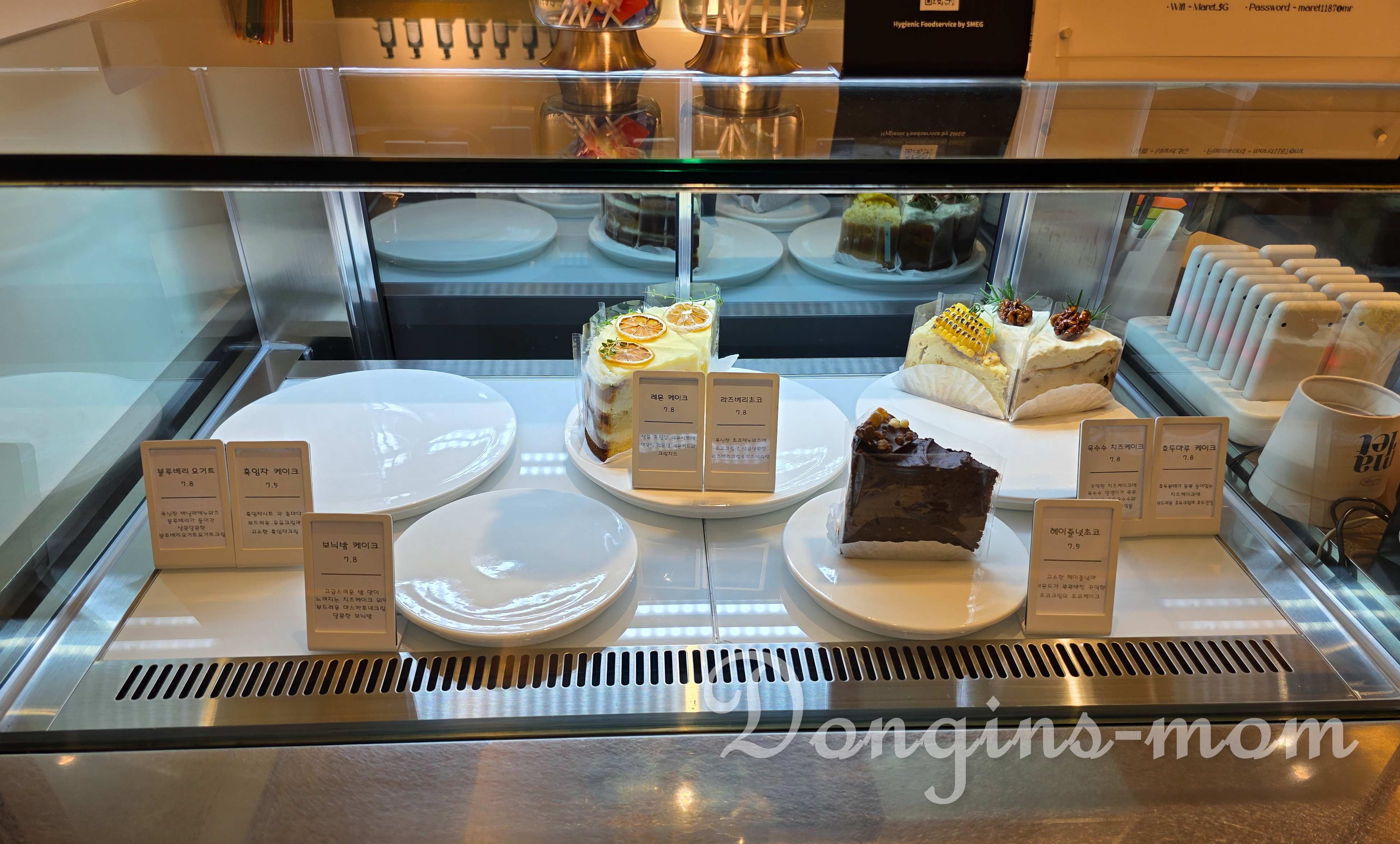 메뉴판에 쓰여있지 않지만 옆쪽에 케이크가 있고 주문하다가 뒤를 돌아보시면 스콘, 브라우니가 있습니다.
