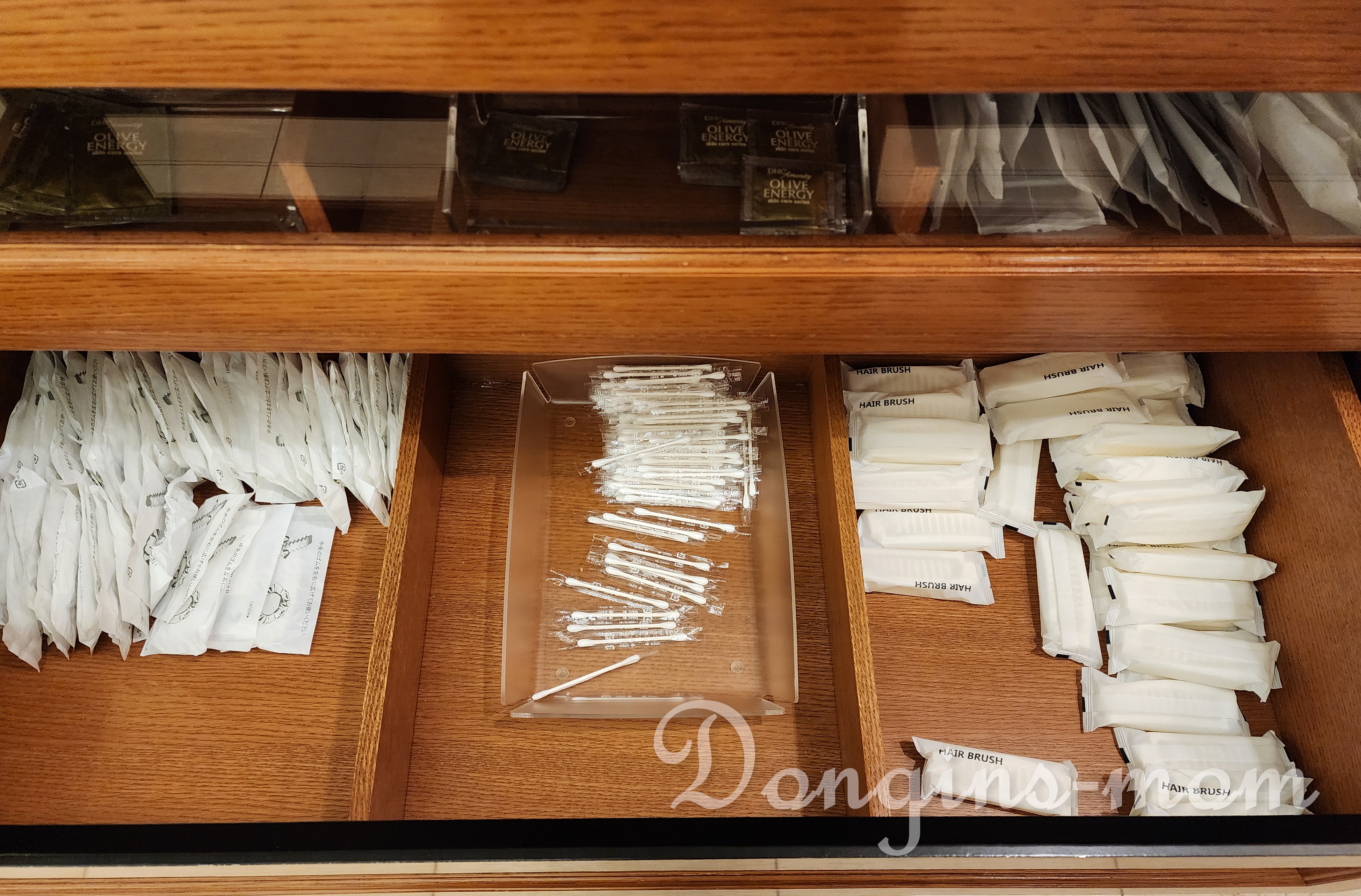 객실에 준비되지 않은 어메니티는 프런트 옆에 비치되어 있으니 자유롭게 가져가서 사용하시면 됩니다.