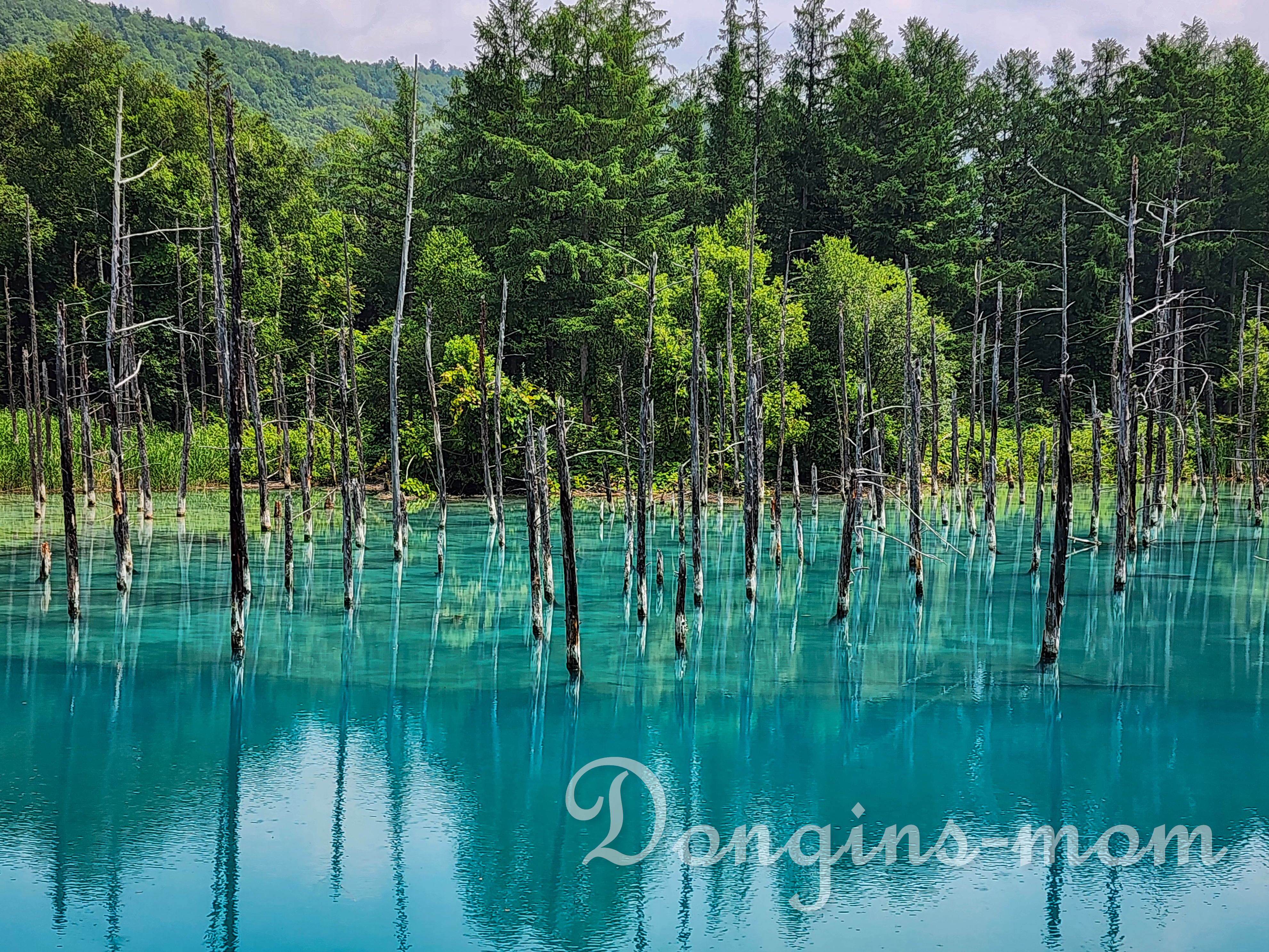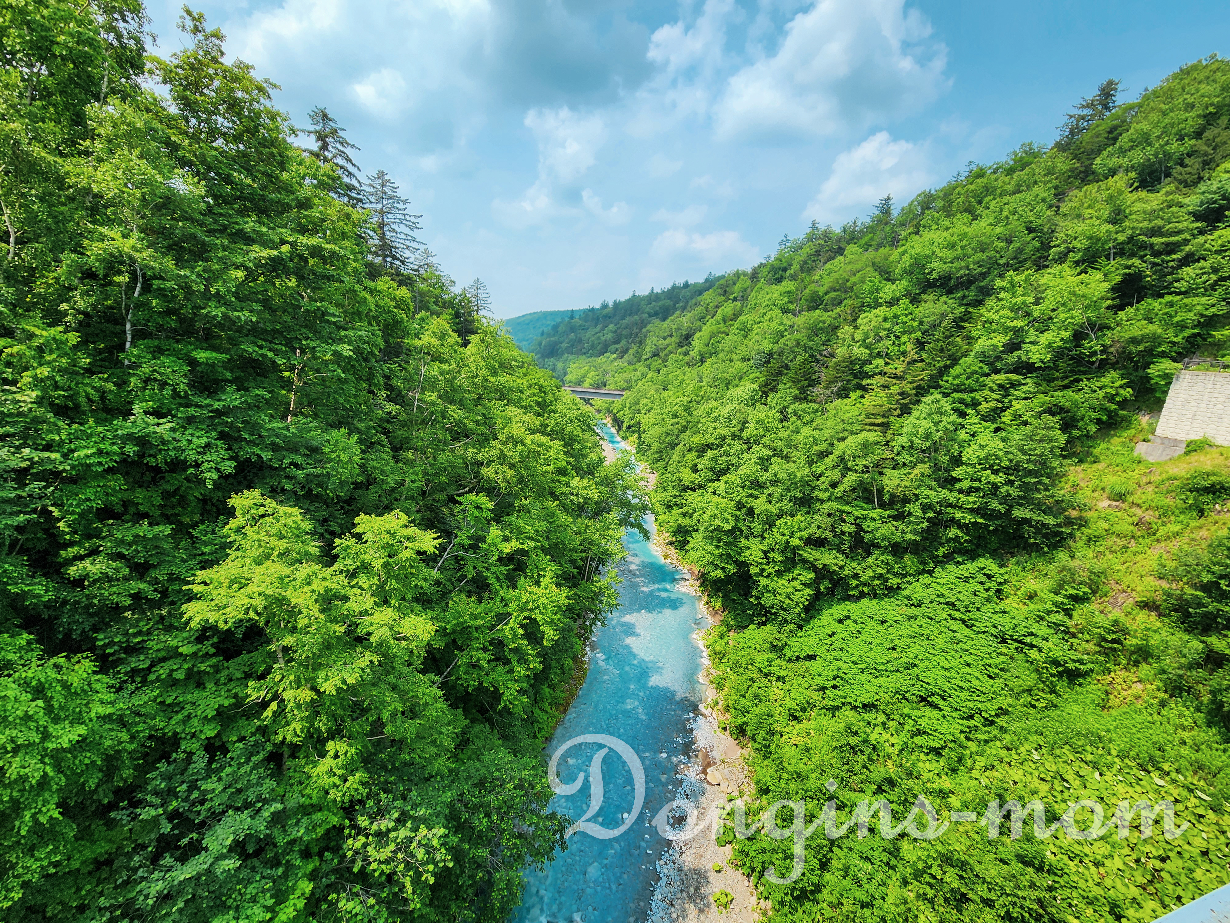 비에이의 대표적인 온천인 시로가네 온천의 폭포입니다. 안개가 낄 때도 가끔 있지만 맑은 날에는 더운 영롱한 푸른빛을 띱니다.