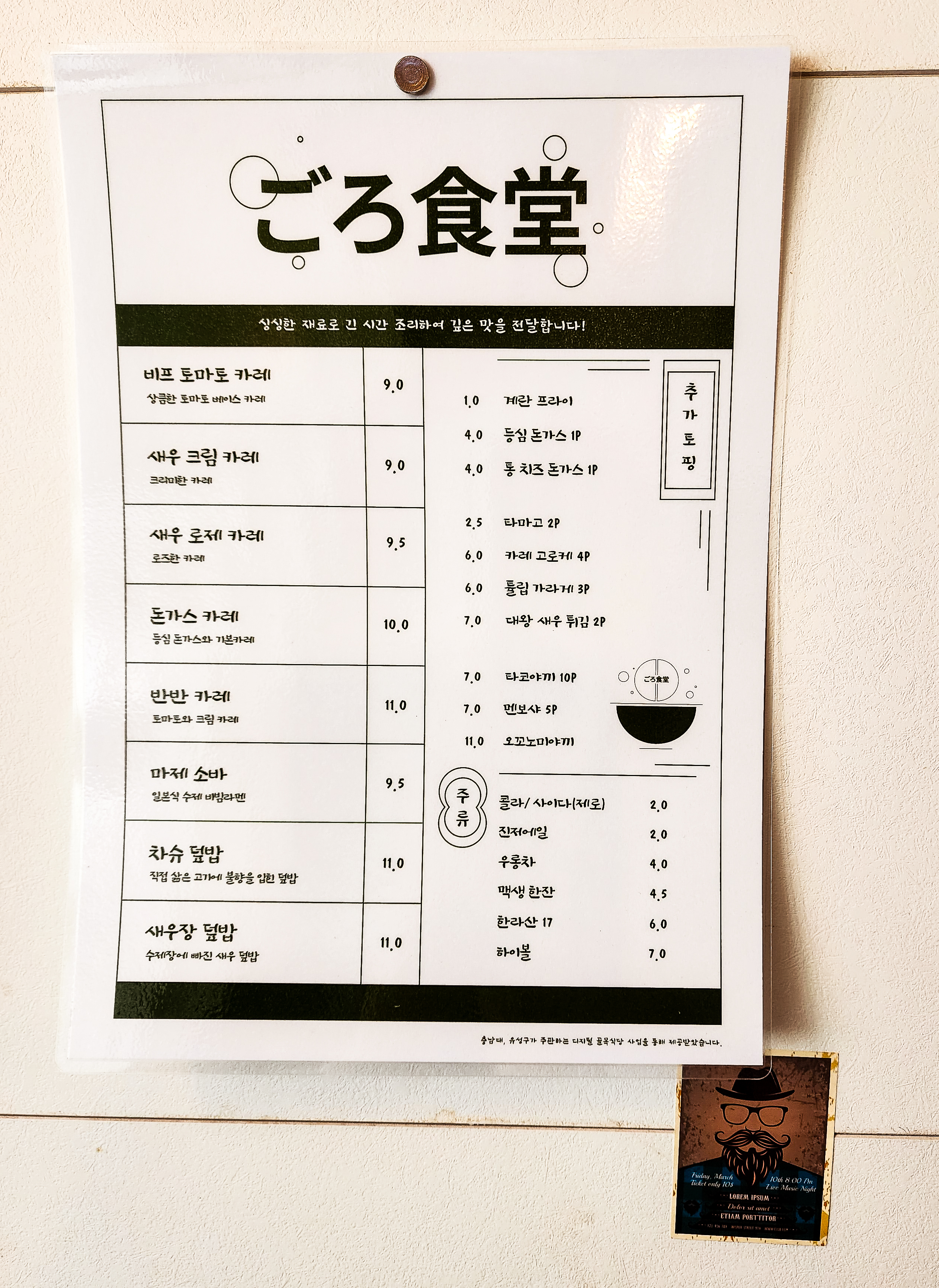 벽에 붙어 있는 메뉴를 보고 주문하시면 되고,